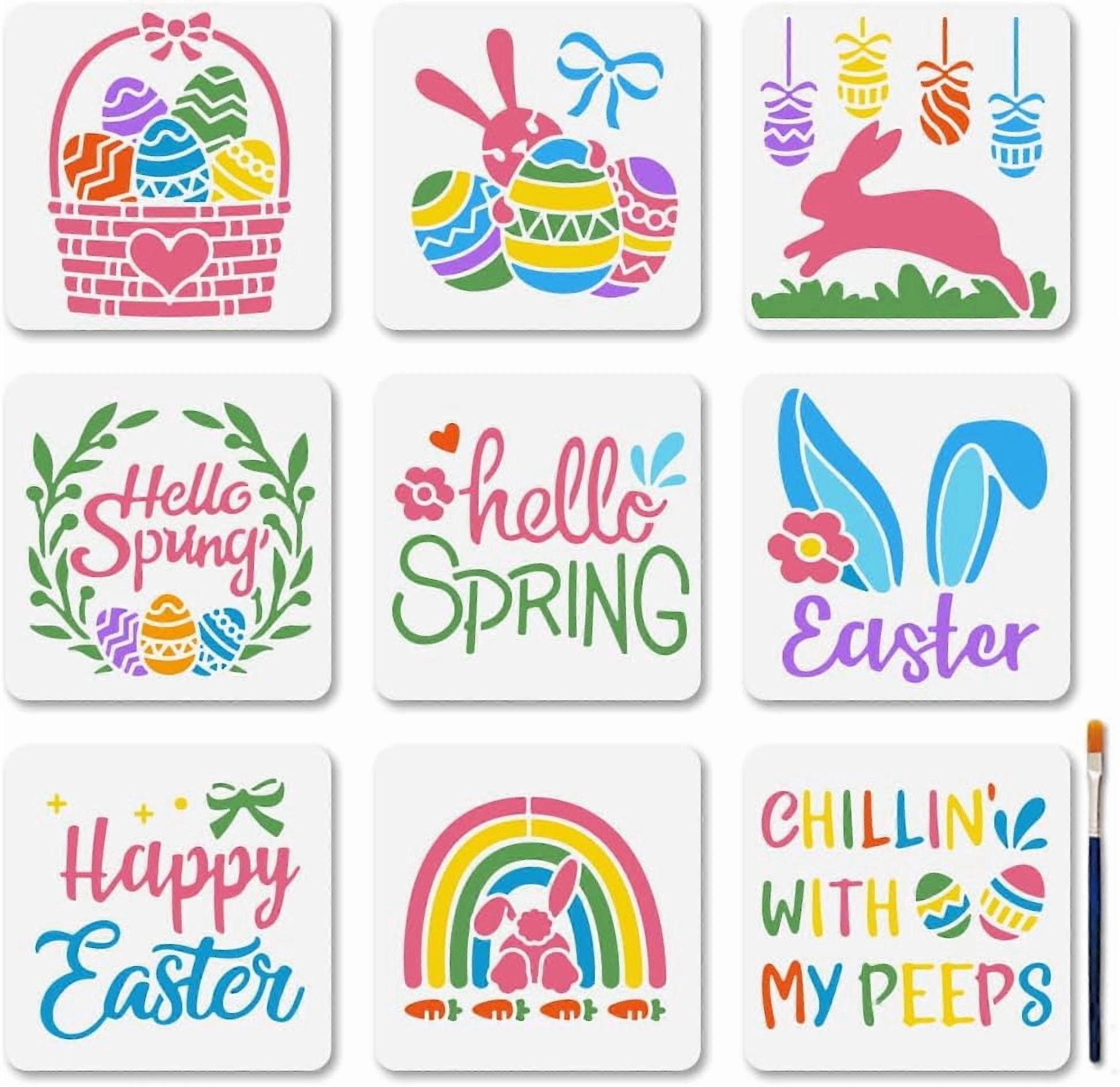 9-Piece Reusable Easter Bunny Stencils (5.9") for Eggs, Windows, Wood, Walls – Includes Brush, DIY Craft & Gift Decoration