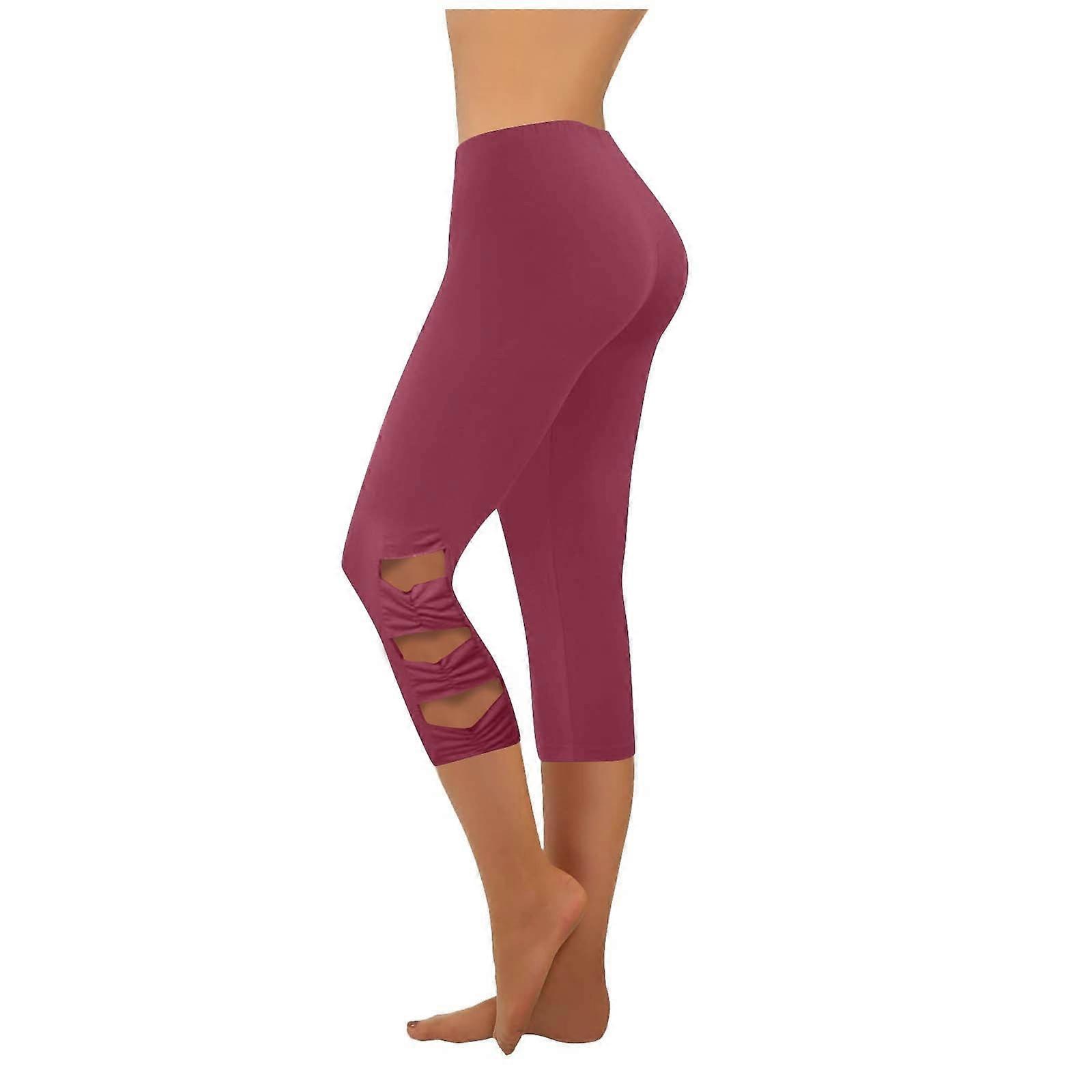 Womens High Waisted Yoga Pants, Wine Burgundy Knee Cut Out Capris, Slim Fit Stretch Lounge Athletic Pants for Women Nylon Spandex,Size 3XL