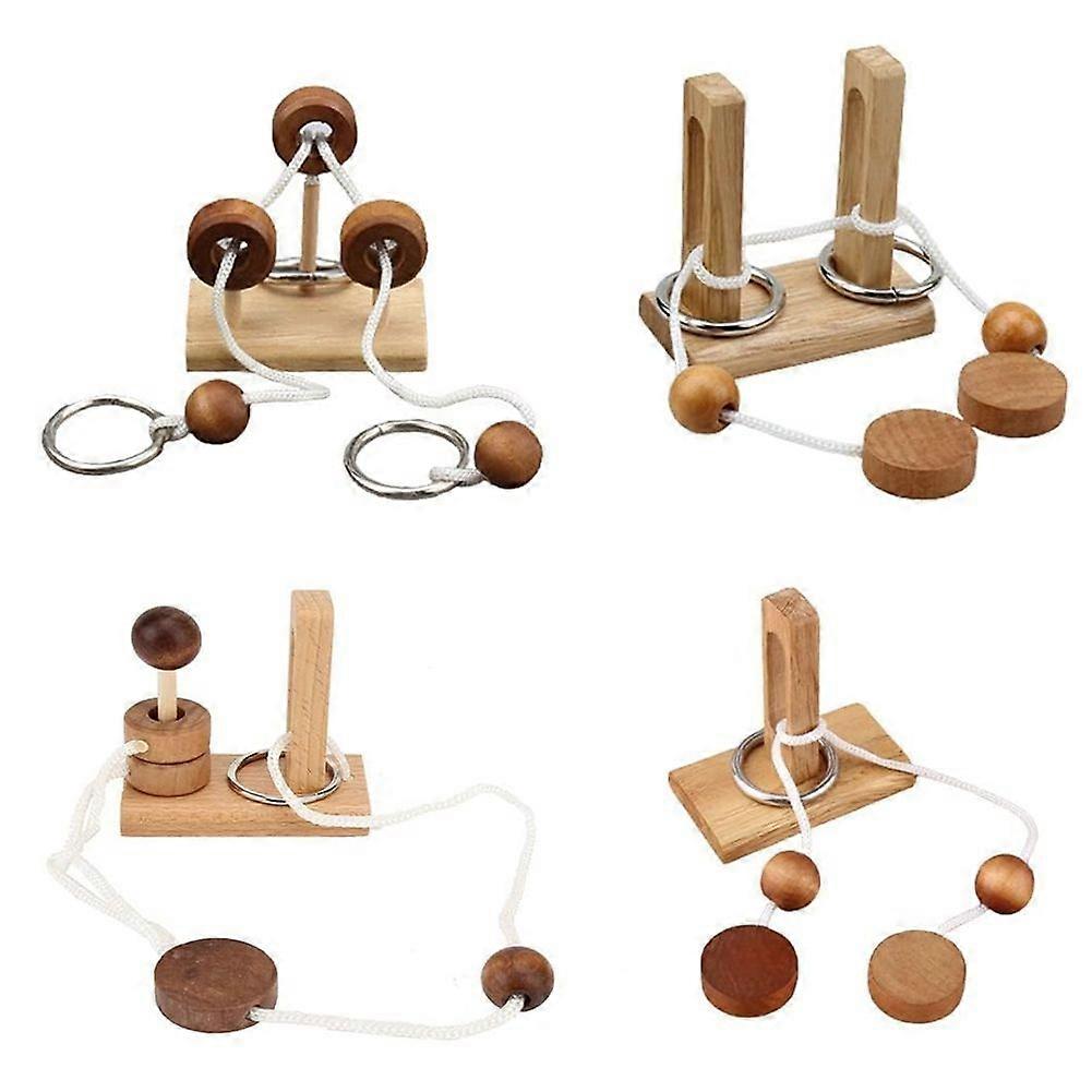 Brain Teaser Puzzle Wooden Threading Rope Loop Puzzle Brain Teaser Game Adult Kids Toy Puzzles for Adults