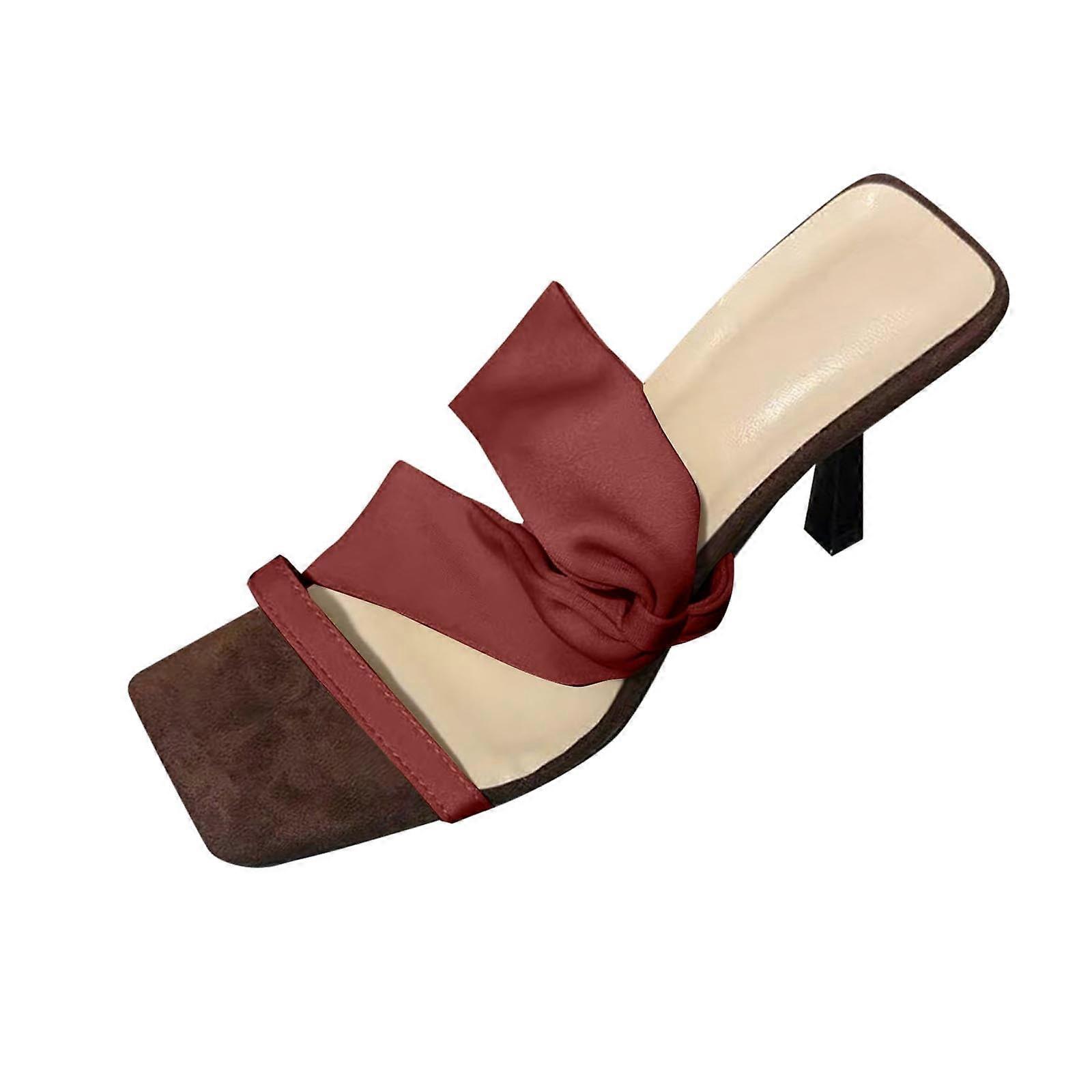 Red Women Casual Elegant Slip On Slippers High Heel Sandals Breathable Spring Summer Shoes With Box 1Pc Size 41 1.12 Lbs