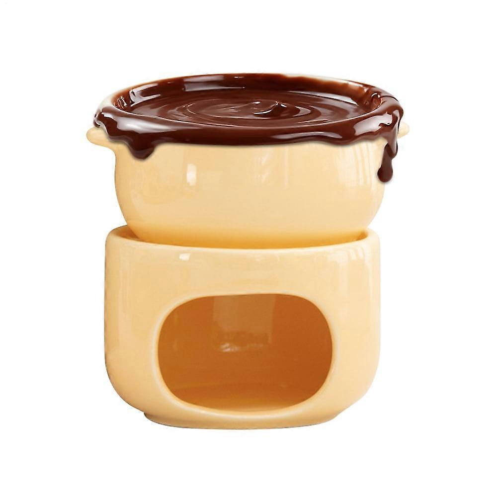 Crafted from durable ceramic, the melting chocolate cup is designed for both functionality and elegance. Heat-resistant and non-stick, this cup ensures effortless use while maintaining its pristine condition. Perfect for cheese dipping, butter, dessert, beverage, or dinner, it adds a touch of sophistication to any occasion. The included forks enhance convenience, making it portable and ideal for weddings, parties, or birthday celebrations. Enhance your dining experience with this versatile melting chocolate cup, a must-have for memorable gatherings and culinary enjoyment. Specification Product name: Chocolate melting cup Material: ceramic Dimensions: (note as per picture) Weight: about 450g List Chocolate melting cup x1 set Note: 1. Due to lighting effects and display angles, there may be color differences in the product. 2. Due to manual measurement, there may be errors in product size, please understand. Perfectly Melted Chocolate: With constant temperature heating, this fondue cup ensures a smooth and even chocolate texture, enhancing dipping enjoyment as the tea light maintains melted chocolate for special occasions or intimate dessert moments Heat-Resistant Ceramic: This sweet fondue cup crafted with high-quality ceramic provides reliable heat retention, keeping your fondue warm longer while the insulated base protects countertops and ensures stability, perfect for cozy evenings or entertaining guests at parties Versatile Tool: Designed for convenience, the fondue mug combines functionality with practicality by including all necessary components like a cup, base, tea light holder, and forks, ensuring effortless preparation and enjoyment of desserts and meals in celebratory settings Stable Heat: This Chocolate Fondue Mug provides consistent warmth without spills, ensuring secure and clean fondue experiences perfect for family desserts or entertaining guests at home Hassle-Free Cleaning: Featuring a design with smooth surfaces, this chocolate fondue cup prevents stubborn buildup, offering quick maintenance and saving valuable time when used repeatedly at celebrations or comfortable evenings