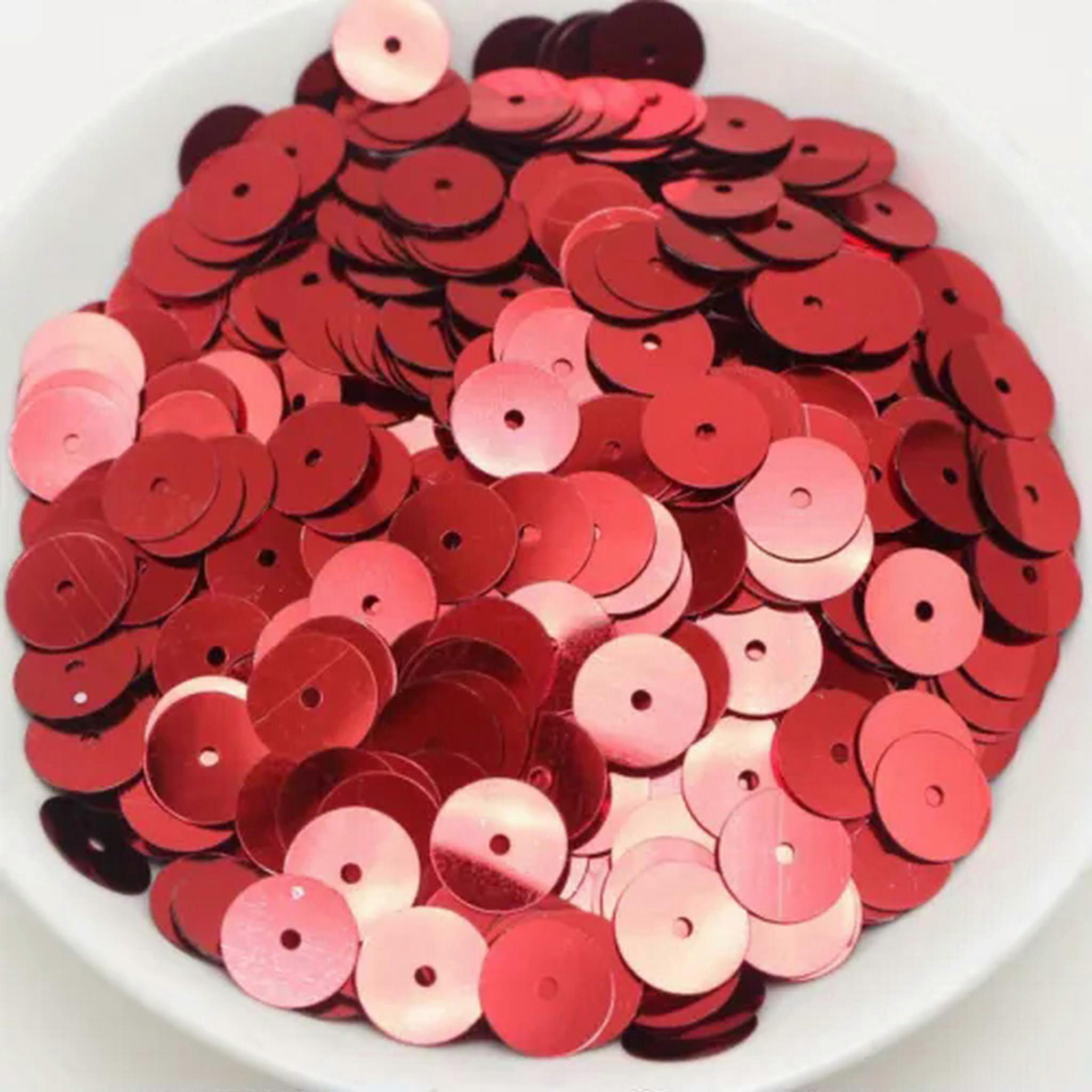 60Gram 5mm 6mm 8mm 10mm 12mm Flat Round Loose Sequins Paillettes sewing Wedding-1200pcs 12mm-Red