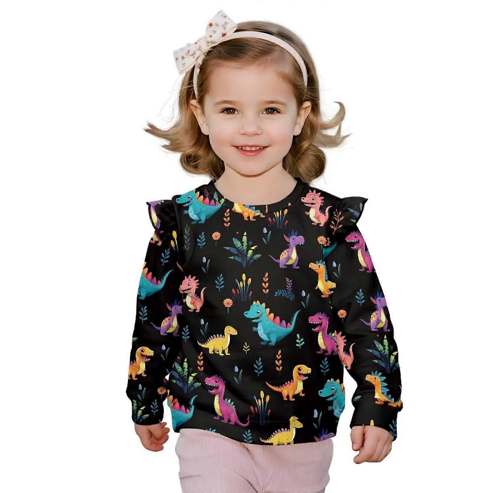 Dinosaur Toddler Sweatshirt for Girls 1T-2T, Long Sleeve Pullover with Ruffled Shoulders, Playtime & Outings