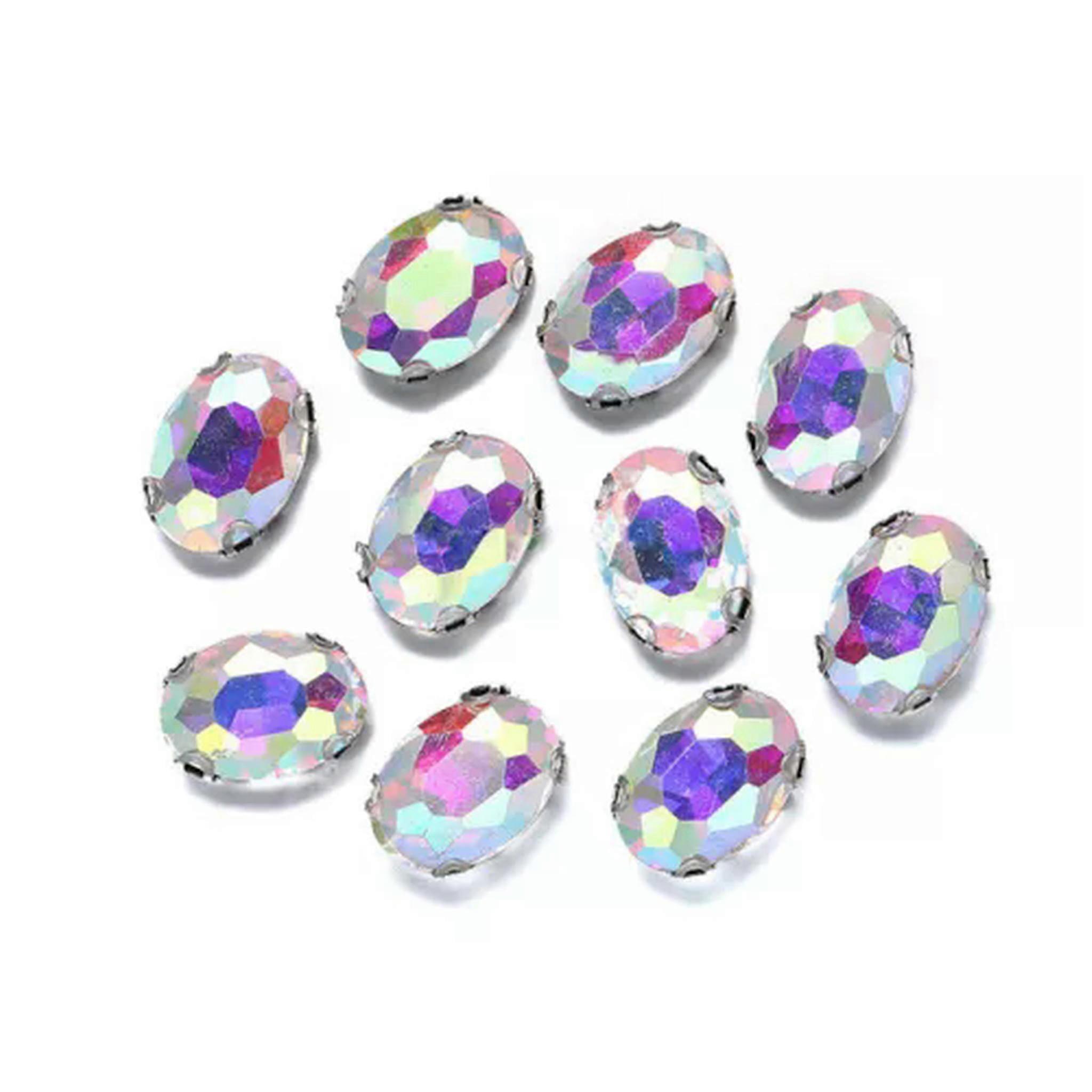 10pcs Sew On Oval Crystal Glass Flat Back Claw Cup Rhinestones Beads DIY Jewelry-8x10mm-Clear AB