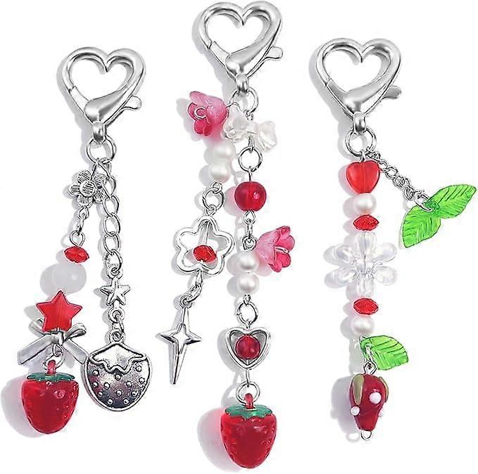 Stylish Keychain: These cute keychains comes in pink red strawberry, butterfly, green leaves,star,bear,heart etc.pendant designs and unique heart or star clasps,make it look very beautiful and exquisite. High Quality Keychain: Our aesthetic keychains are made of high-quality alloy,acrylic, beads and crystal which is durable and exquisite,and hese keychains are just the right size to make you look different, exquisite and stylish. Bright Gloss:The Cute keychains for women is polished, with a good metallic feel and bright luster, which can maintain the color for a long time and adding more charm and fashion to shows a simple, elegant and fashionable taste. Multi-Function: The keychains accessories are the perfect addition to any key ring, purse, bag,USB sticks, backpack,car keyrings, or travel bag, widely used in car key charms, wallet charms, handbag decorations, phone case accessories, or key rings. Ideal Gift: More than just a practical keychain, this cute strawberry accessory doubles as a chic adornment for contemporary women, adding a touch of elegance to their ensemble. This charm keychain set is the perfect gift for women who appreciate cute fashion accessories. Novelty keychains Aesthetic Keychain Charms Stylish Keychains Accessories for Women Bag Purse Gifts