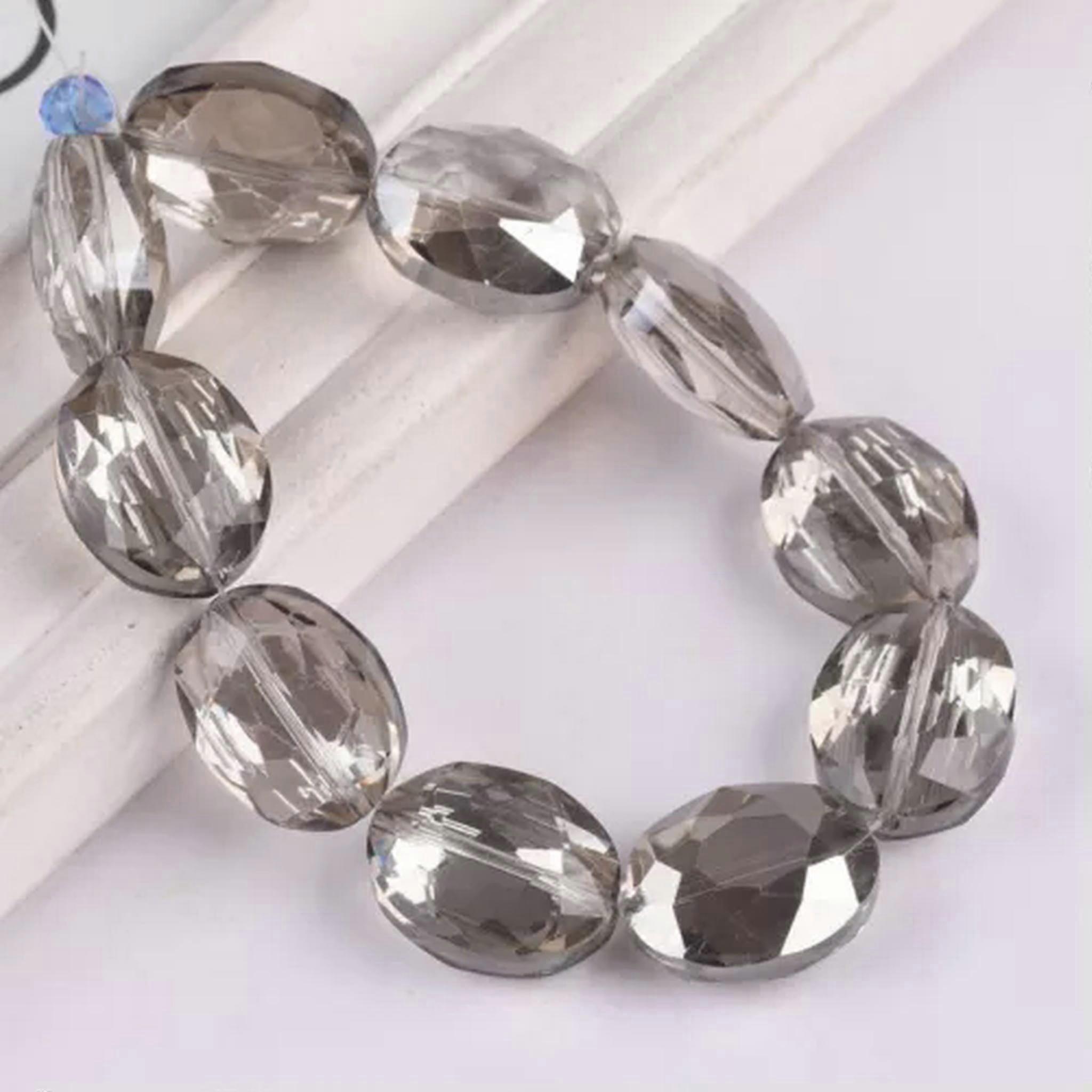 10pcs Oval Faceted 12x9mm 16x12mm 20x16mm Crystal Glass Beads for Jewelry Making-Clear Gray-20x16mm