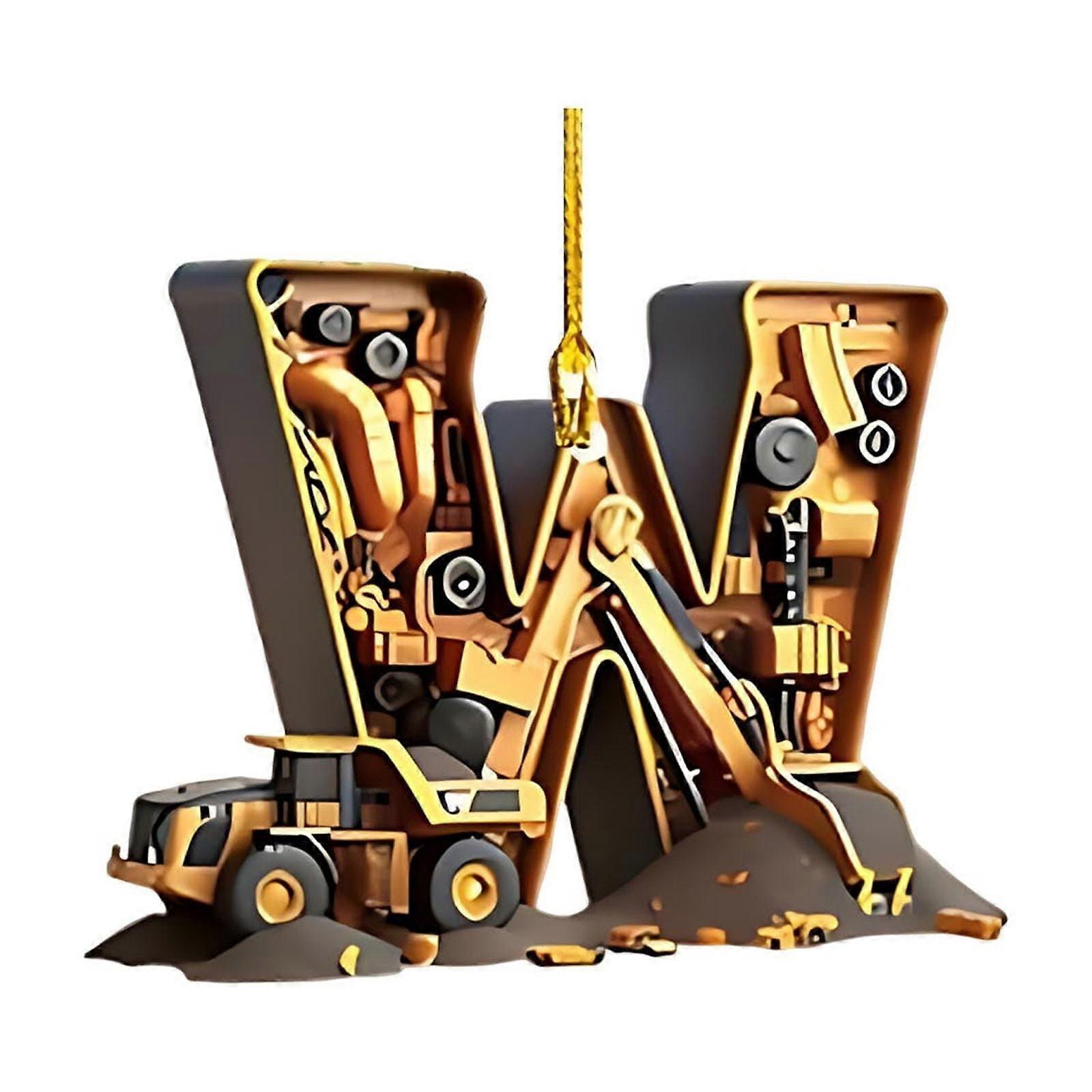 Excavator Christmas Ornament with Initials, Excavator Ornaments for Christmas Tree Decorations, Christmas Decorations for Family Holiday Party ( W )