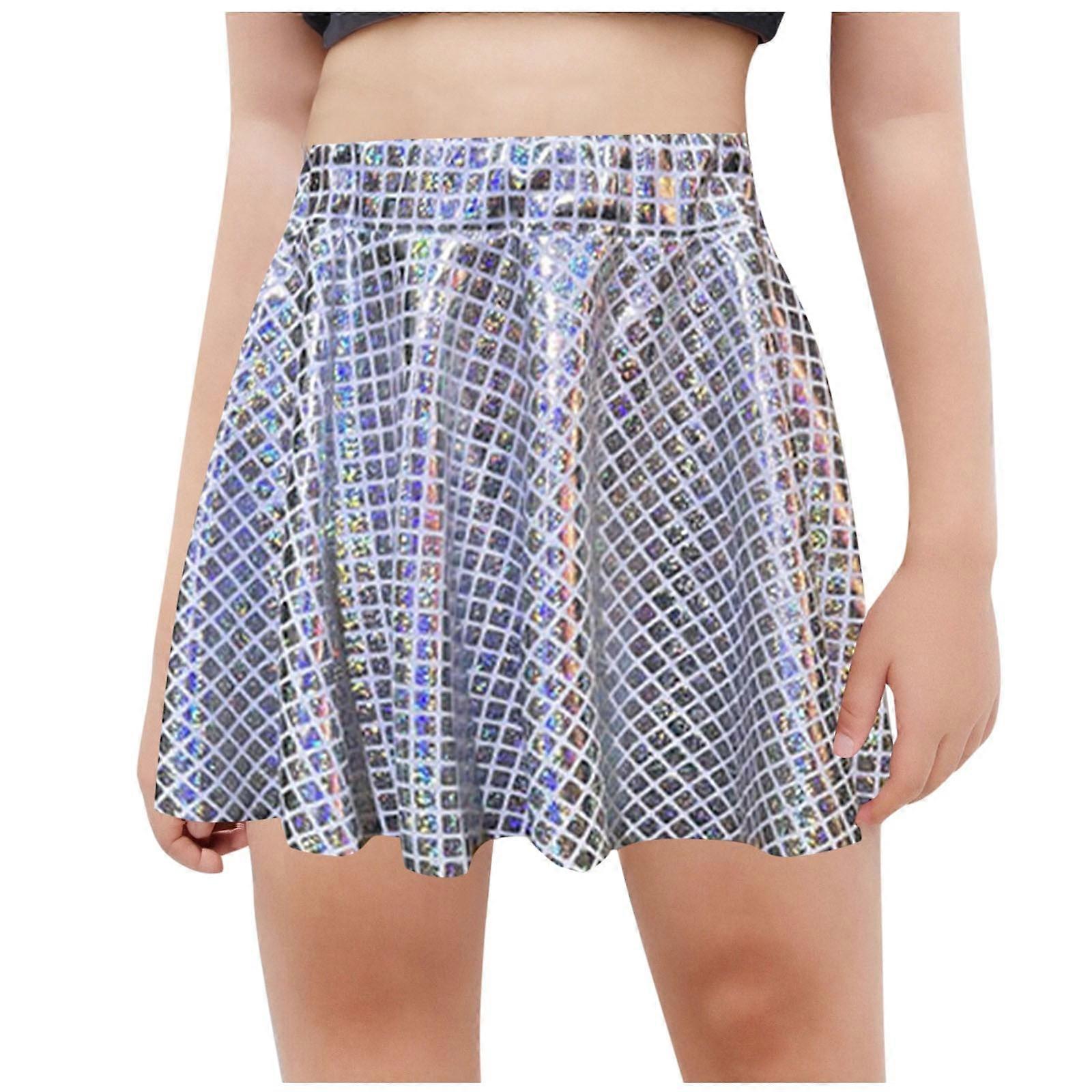 Kids Girls Shiny Metallic Hip Hop Jazz Skirt Ruffled A-line Mini Skirts for Performance Dance Show