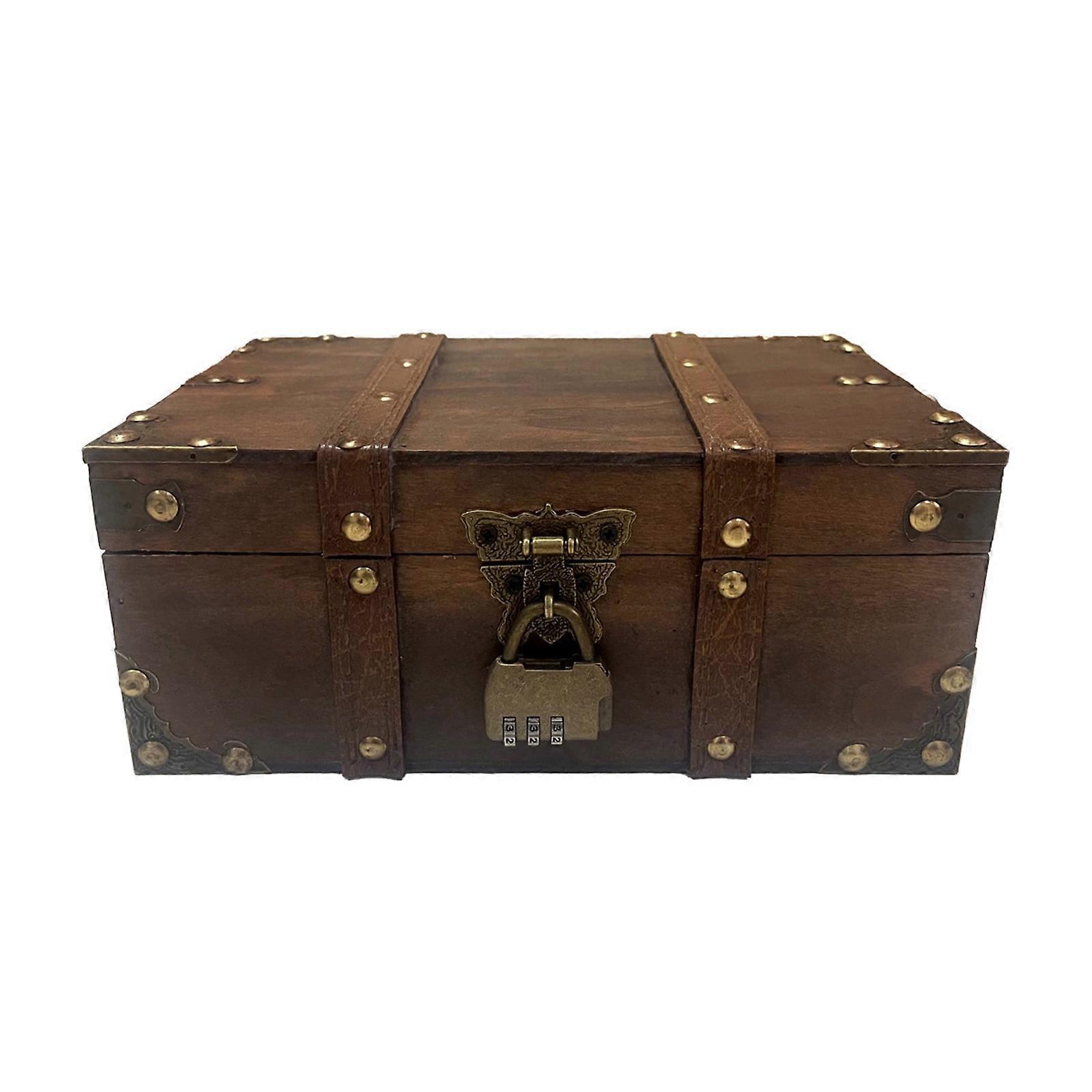 Vintage Wooden Keepsakes Chest with Mechanism Antique Jewelry Storage Box Lockable Small Accessories Container