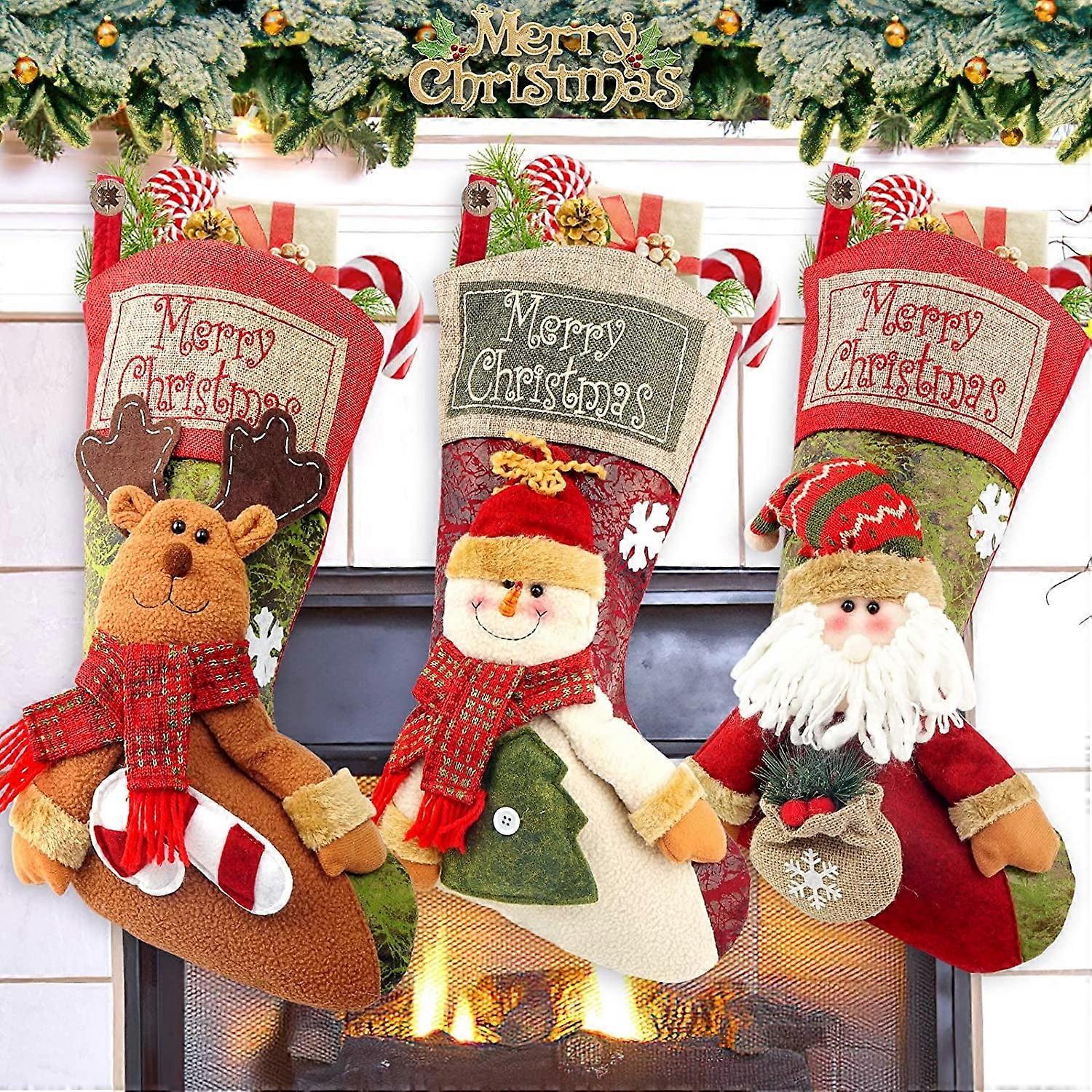 Christmas Stockings Set of 3, 18" Large Fireplace Hanging Decorations (Santa, Snowman, Reindeer) – Family Holiday Xmas Party Decor