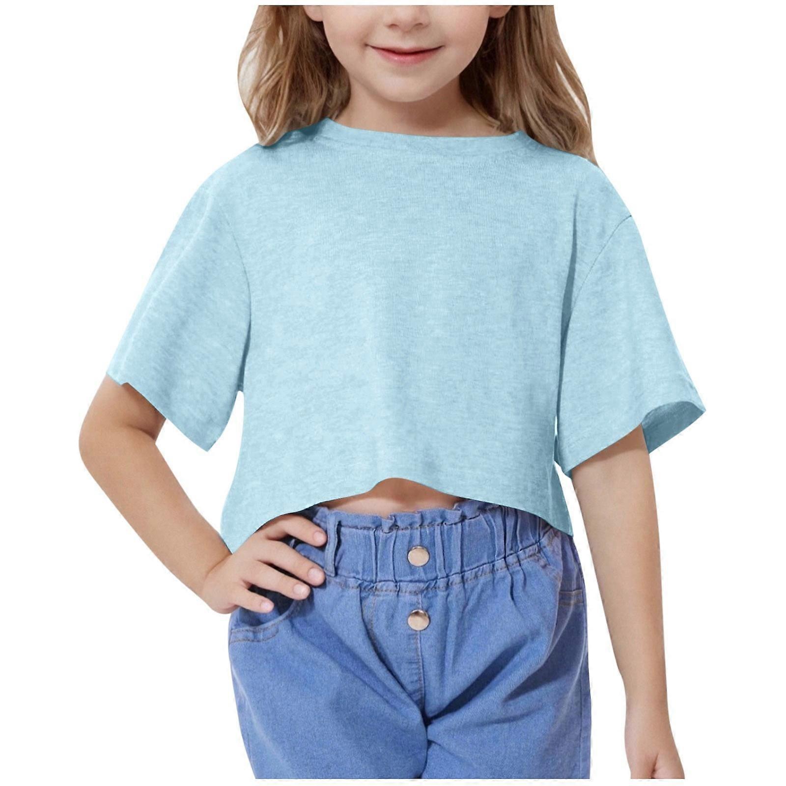 Girls Summer Crop Tops Kids Fashion Oversized Crew Neck Cropped Short Sleeve T Shirts Basic Tees