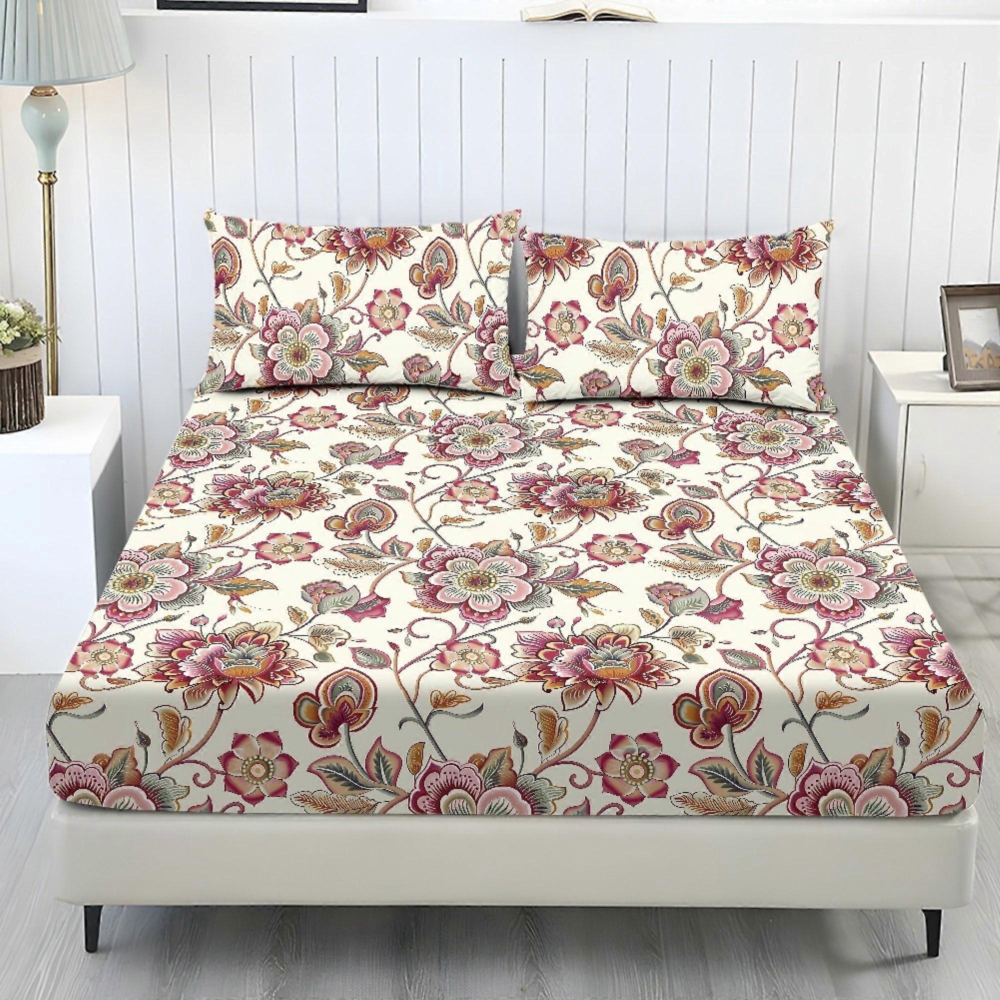 Vintage Paisley Floral 3-Pc Full Sheet Set, Soft Stretch Fabric, Easy Fit – 1 Fitted Sheet + 2 Pillowcases