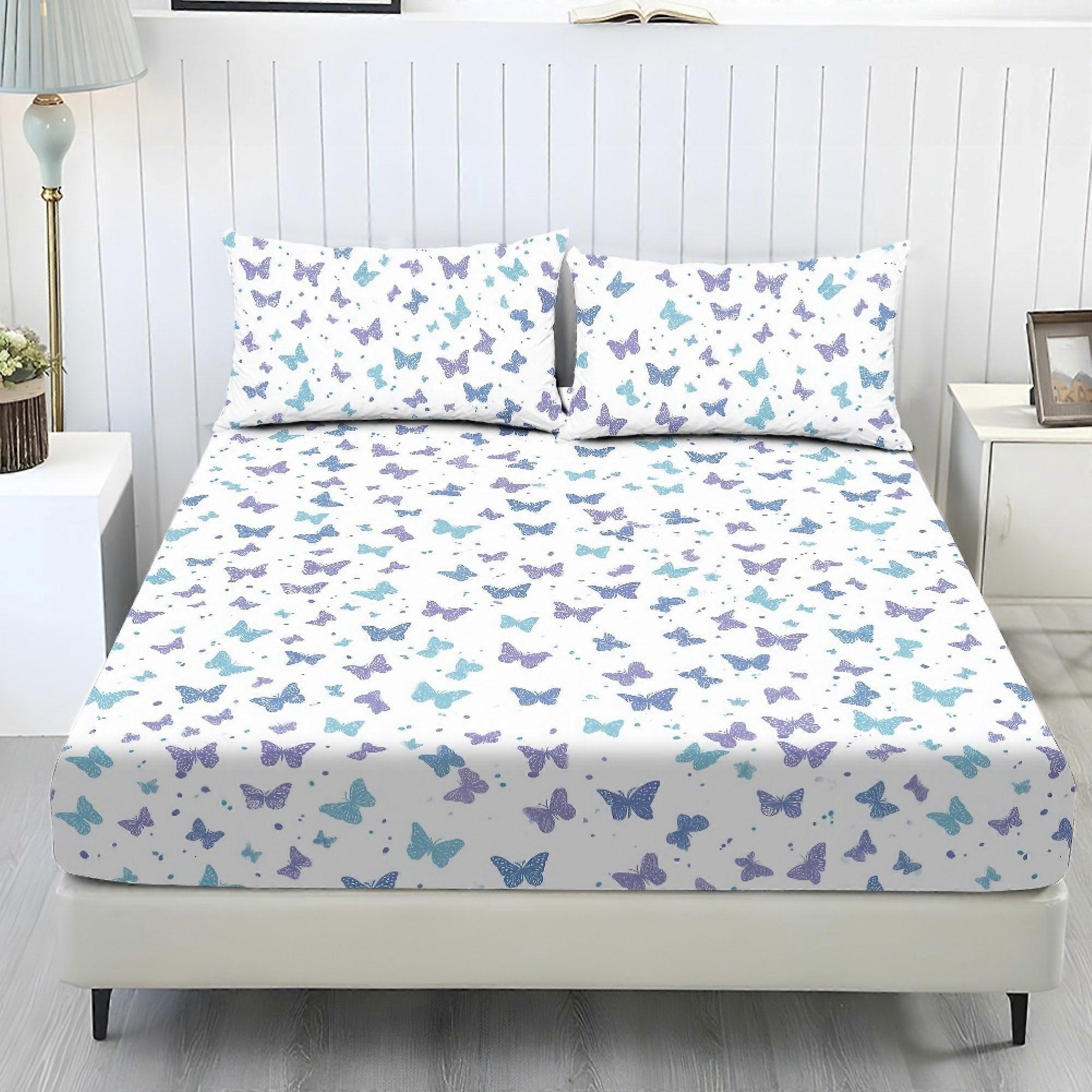Butterfly White Printed Twin Bed Sheets, Soft Cooling Polyester 3-Pc Set (1 Fitted Sheet + 2 Pillowcases), Chic RV Home Decor
