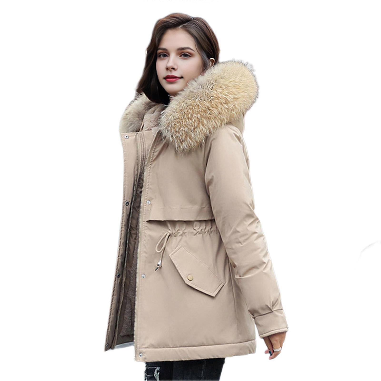 Winter Women Jacket Furry Hood Long Sleeves Drawstring Waist Pockets Zipper And Button Closure