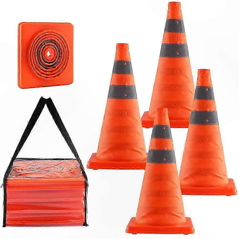 18-Inch Foldable Traffic Cones with Reflective Bands, 4-Pack & Carry Bag