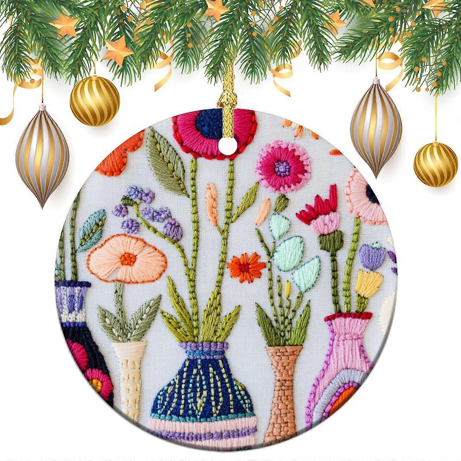 Colorful Rustic Floral Ceramic Christmas Ornament, 3", Compatible with Indoor/Outdoor Decor, Gifts for Women & Men