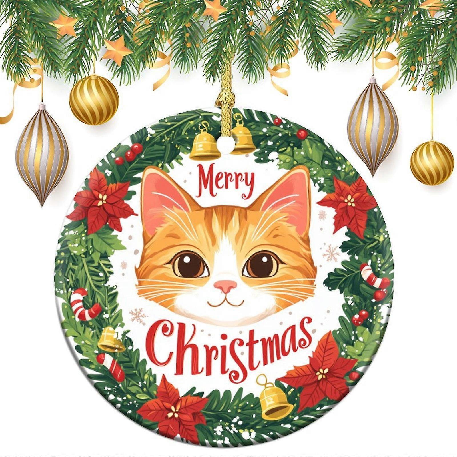 Orange Cat Christmas Ceramic Ornament, 3" Double-Sided Porcelain Xmas Tree Decor, Keepsake Gift for Family & Friends