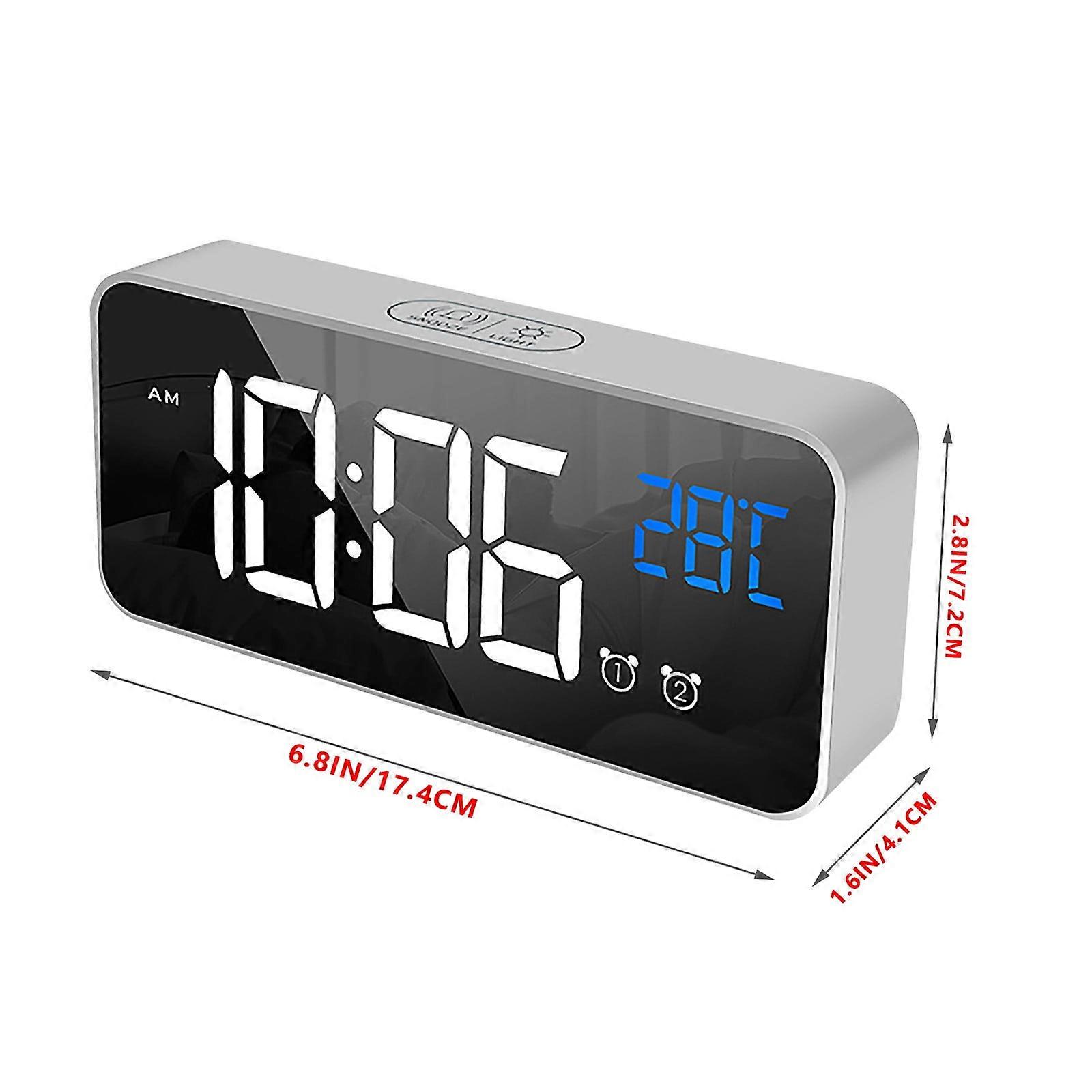 LED Digital Alarm Clock with Large Screen, USB Charging & Silent Operation – Compatible with Home/Office, Silver
