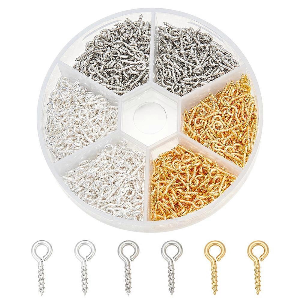 900Pcs Screw Eye Pin 3 Color Pin Peg Bail Bulk 0.4×0.16inch Eye Hook Screw for Half Drilled Beads Charms Pendant Connector Necklace Earring Jewelry