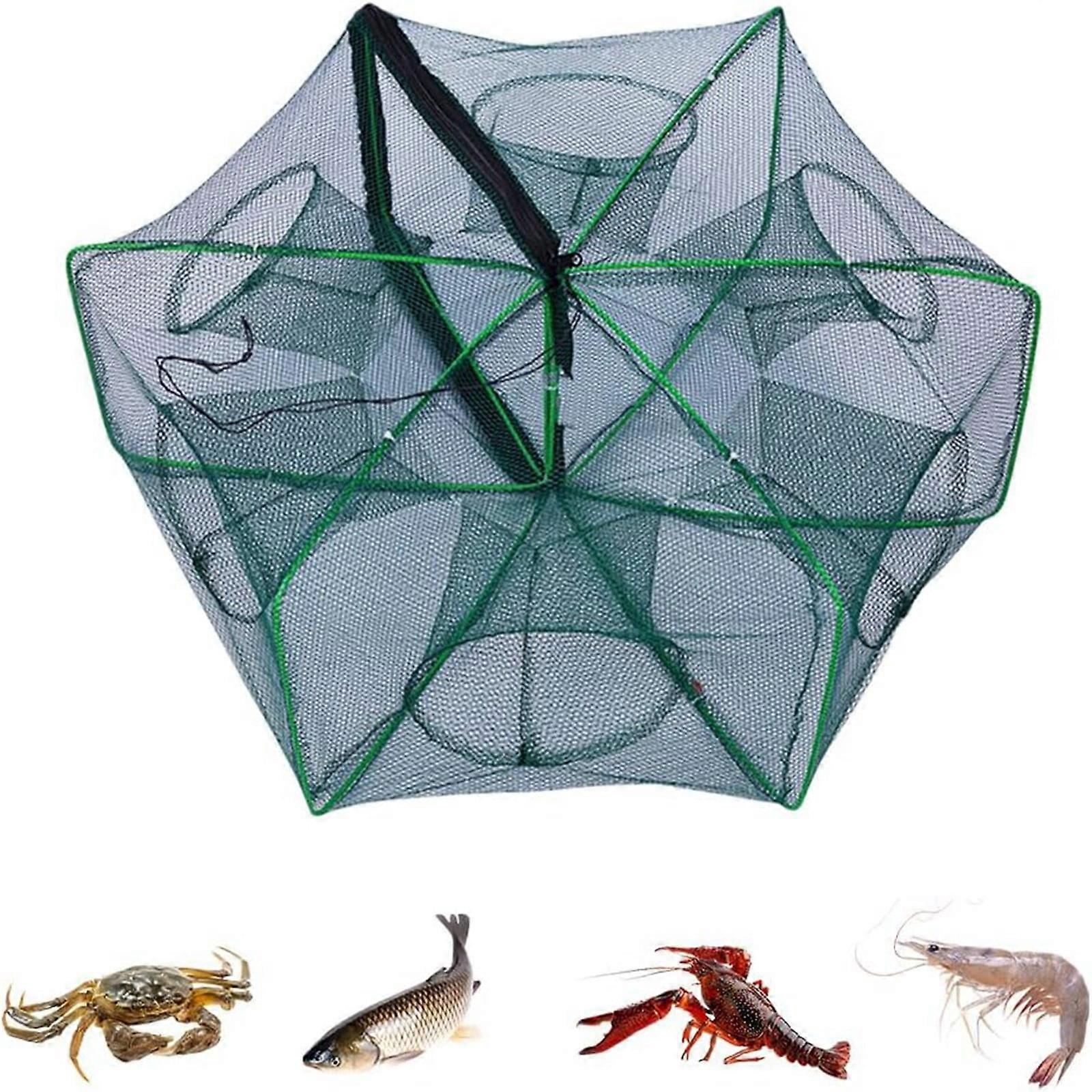 Foldable Fishing Trap Net – Auto-Fold, Strengthened, 6-Hole Minnow/Crawfish Trap, Compatible with Bait Fish