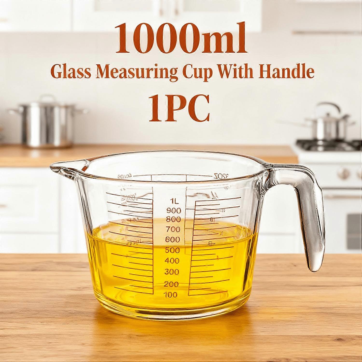 Glass Measuring Cups [Insulated Handle | V-Shaped Spout]For Prepping Baking and Cooking Preheated Oven Dishwasher Freezer and Microwave Safe (1000ml)
