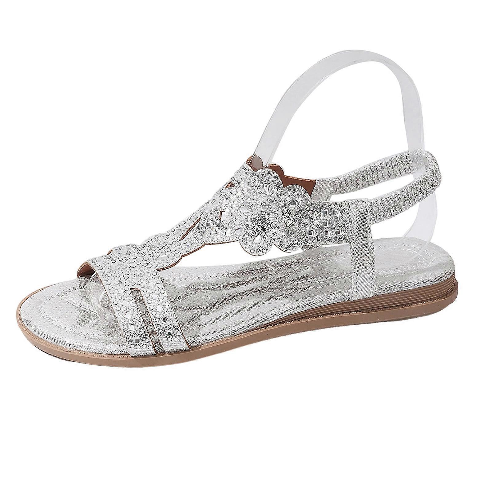 Women's Silver PU Wedge Sandals with Rhinestone, Elastic Strap, Comfortable Casual Shoes for Spring/Summer – Size 39, 1 Pair