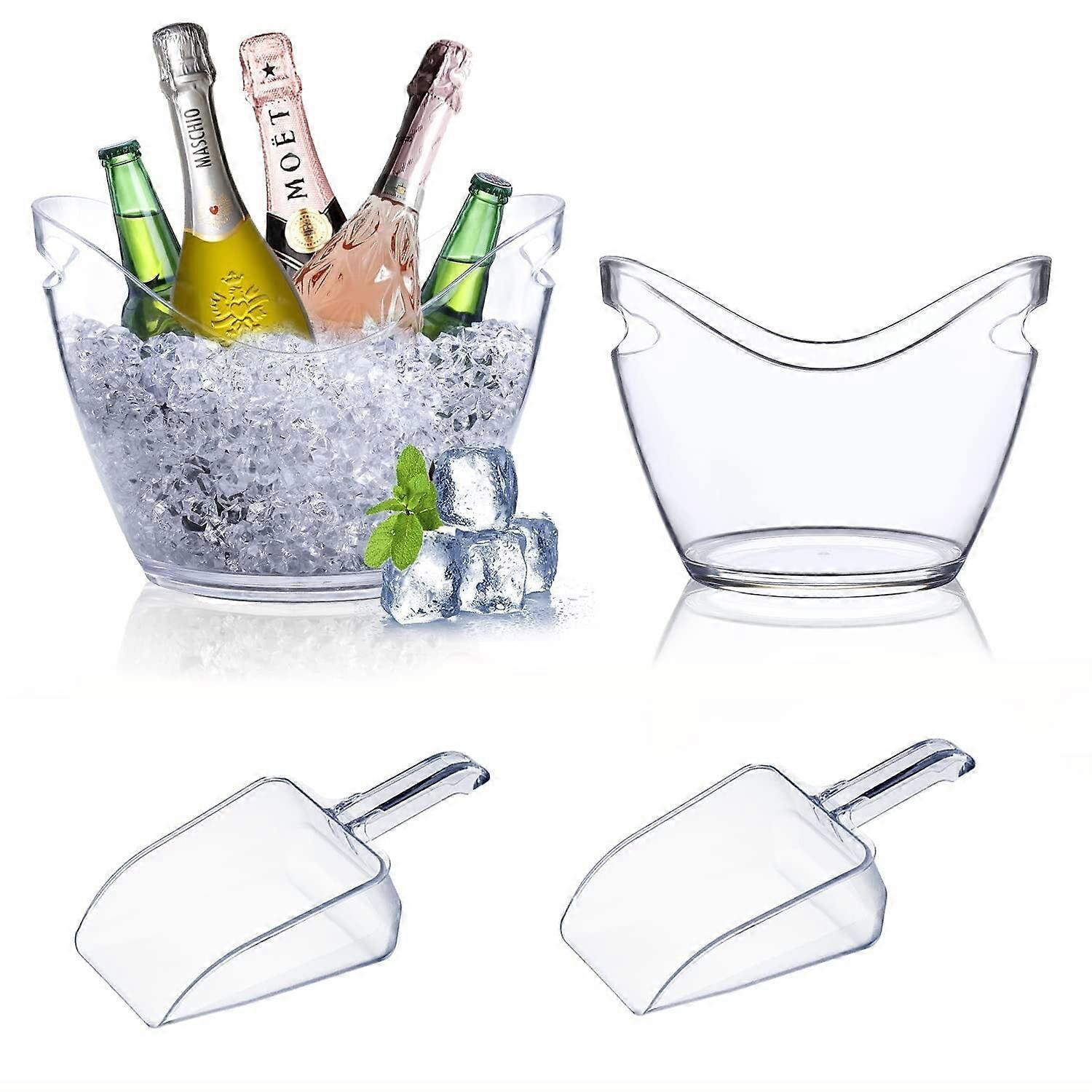 Clear Acrylic Beverage Tub (4L) for Parties, Compatible with Cocktail Bars, Wine, Champagne & Beer – Includes Scoops