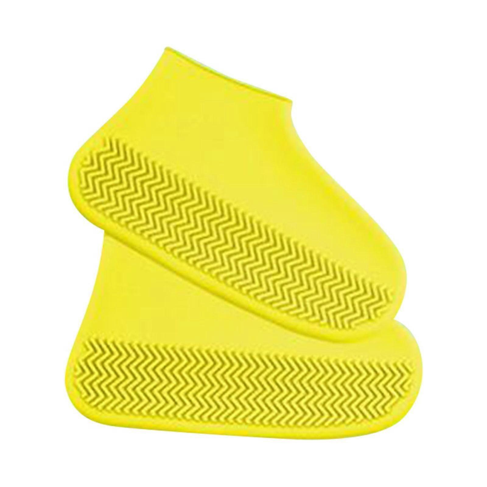 Waterproof Shoe Covers, Non-Slip Water Resistant Overshoes Silicone Rubber Rain Shoe Cover Protectors For Kids, Men, Women Yellow L