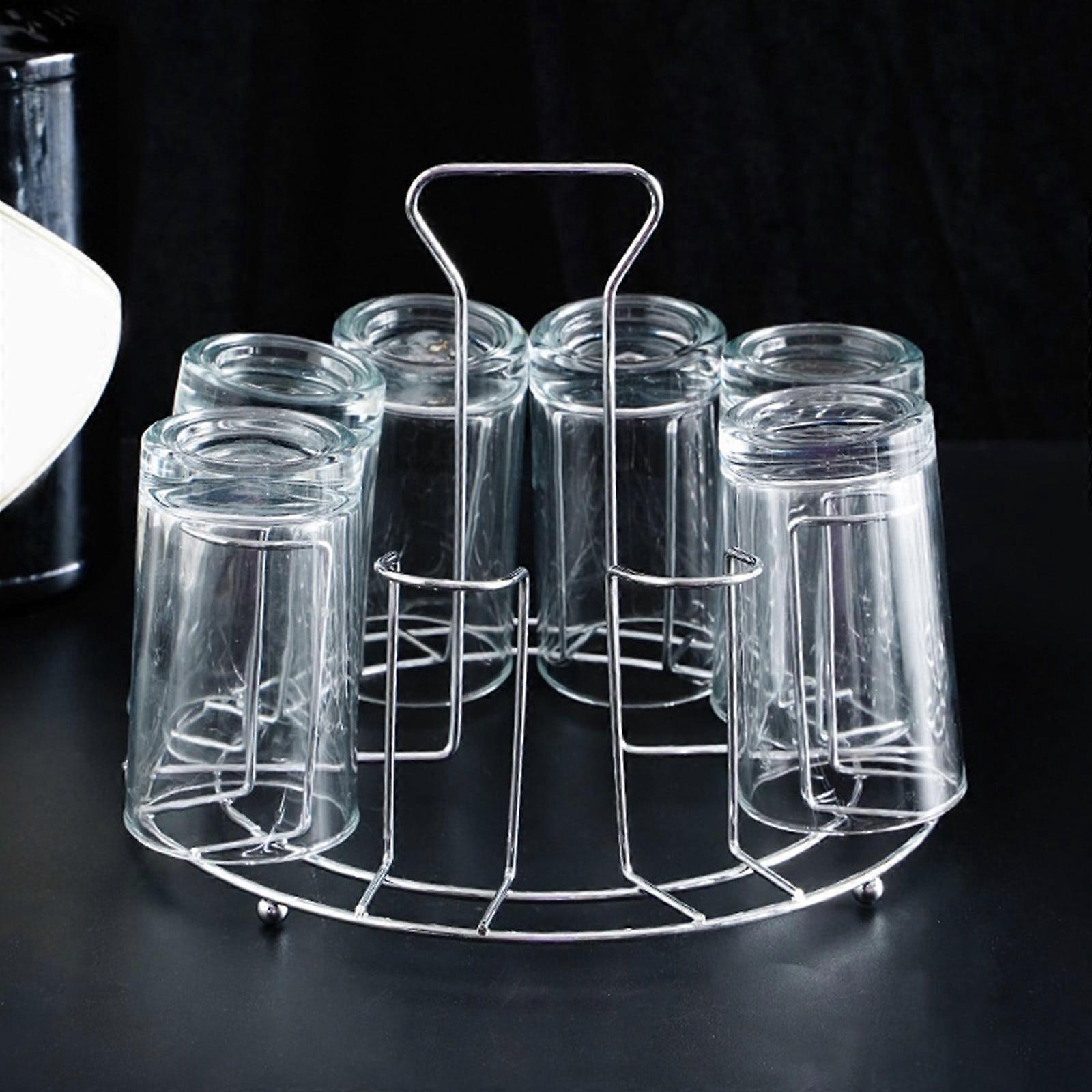 Stainless Steel Drip Cup Rack – Inverted Design, Portable Handle, Space-Saving, Silver, 9x8.2x8.2", Compatible with Standard Glass Cups