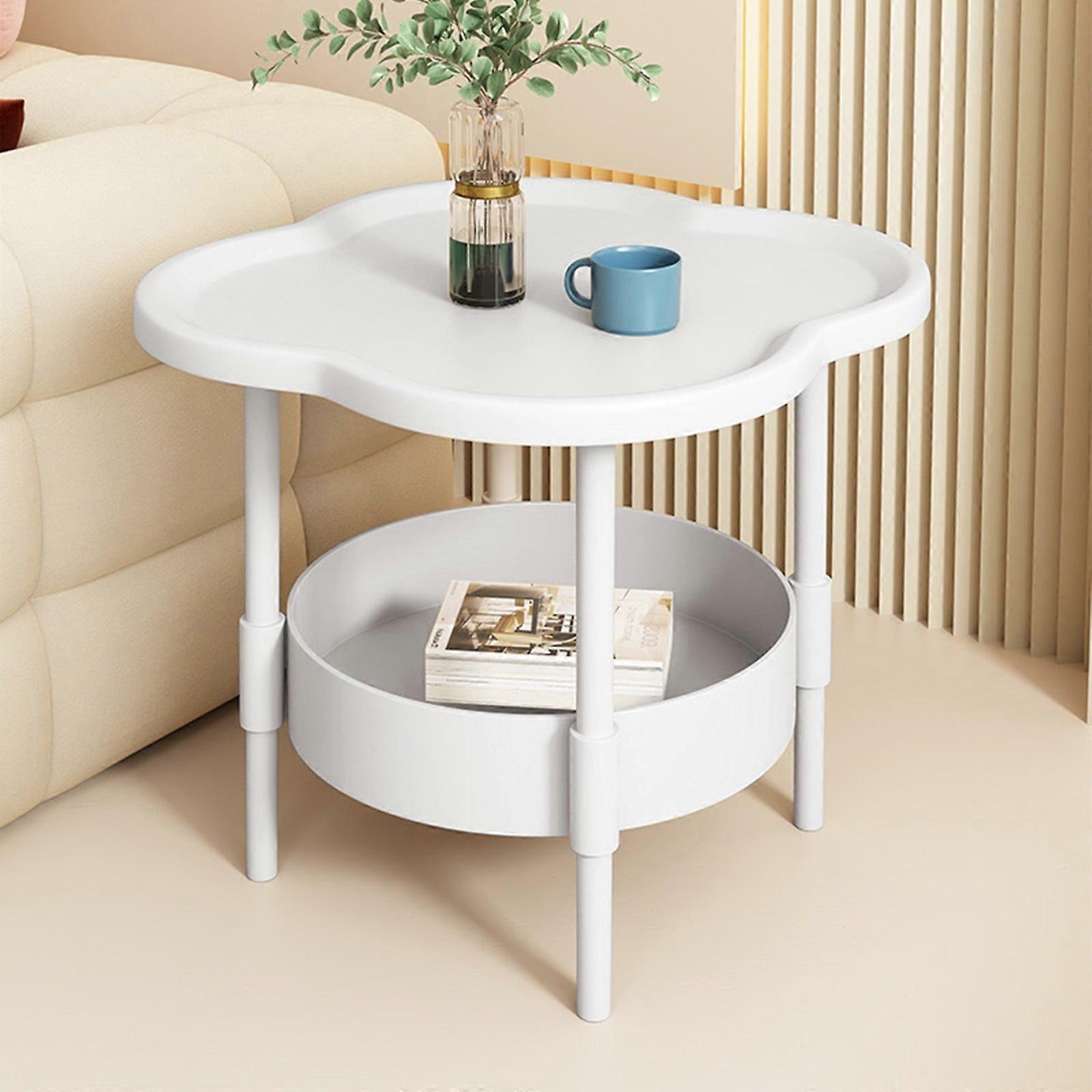 Modern 2-Tier White Side Table for Living Room & Bedroom – Cute Sofa End Table, Compatible with Small Spaces
