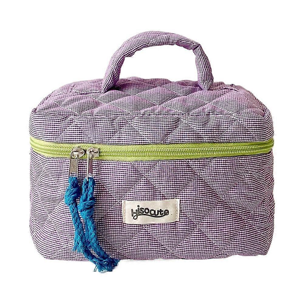 Plaid Dacron-Cotton Cosmetic Bag with Large Capacity for Home and Travel Use