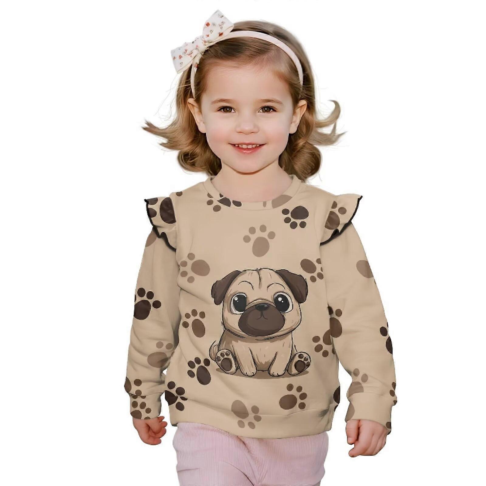 Toddler Girl Crewneck Sweatshirt Ruffle Sleeve Cute Pug Paw Sweatshirts Long Sleeve Shirts for Kids Fall Winter Spring Clothes Pullover Tops Size 1-8