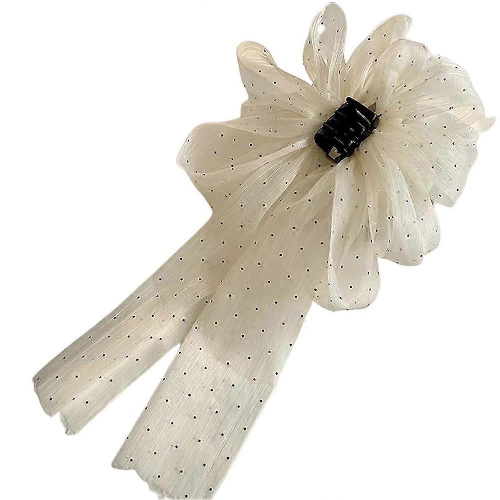 White Rhinestone Drifting Clouds Cloth Hair Claw With Forest Streamer Mesh Bow Design For Women's Various Hairstyles