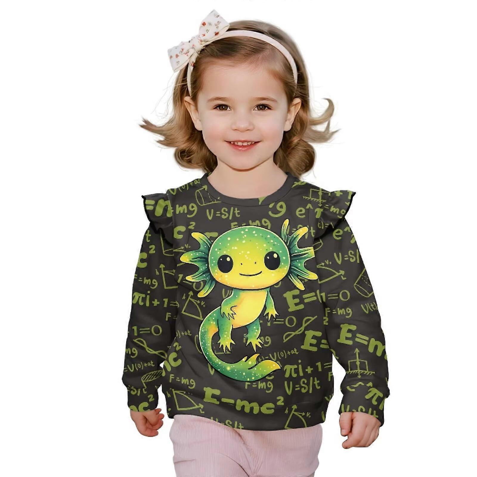 Toddler Girls Sweatshirt Crewneck Green Axolotl Pullover Sweatshirts Cute Ruffle Long Sleeve Shirts Fall Fashion Oversized Athletic Kids Tops