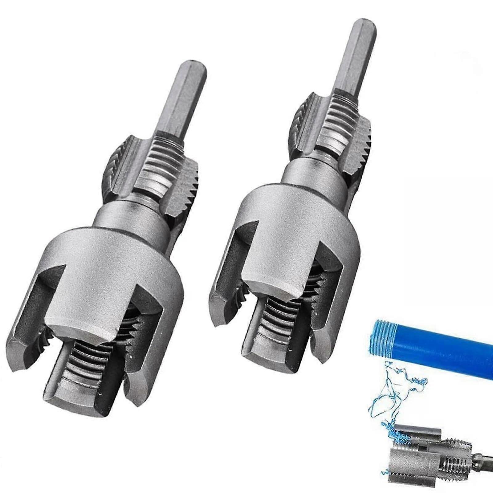 Integrated Pipe Threading Tool for Internal & External Threads, Compatible with Electric Drill, 1/2" & 3/4" PVC/Metal Pipes (Silver)