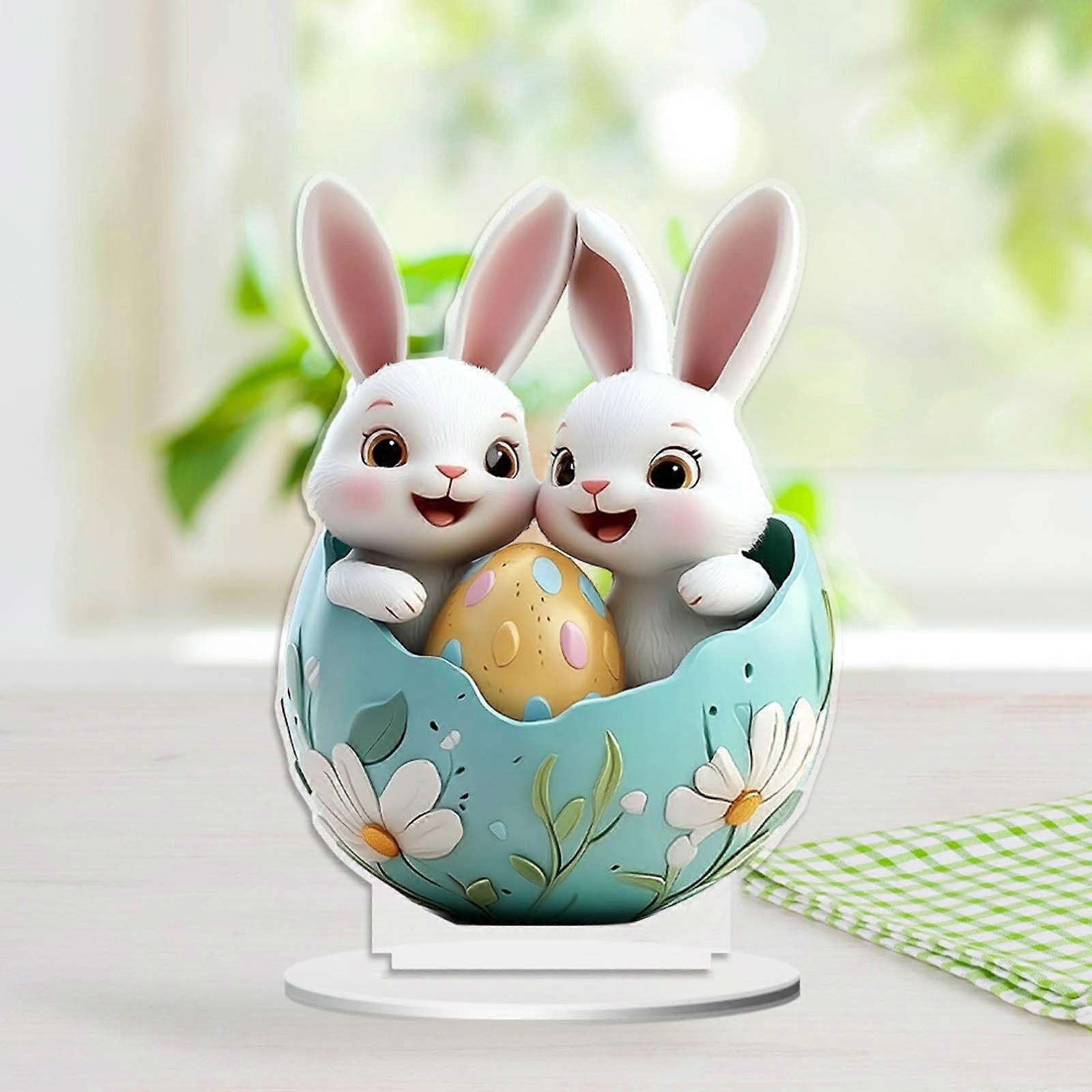1PC Easter Rabbit Ornament, 2D Acrylic Desktop Decor, Cute Cartoon Design for Living Room, Holiday Party & Home – 8" Compatible with Easter Themes