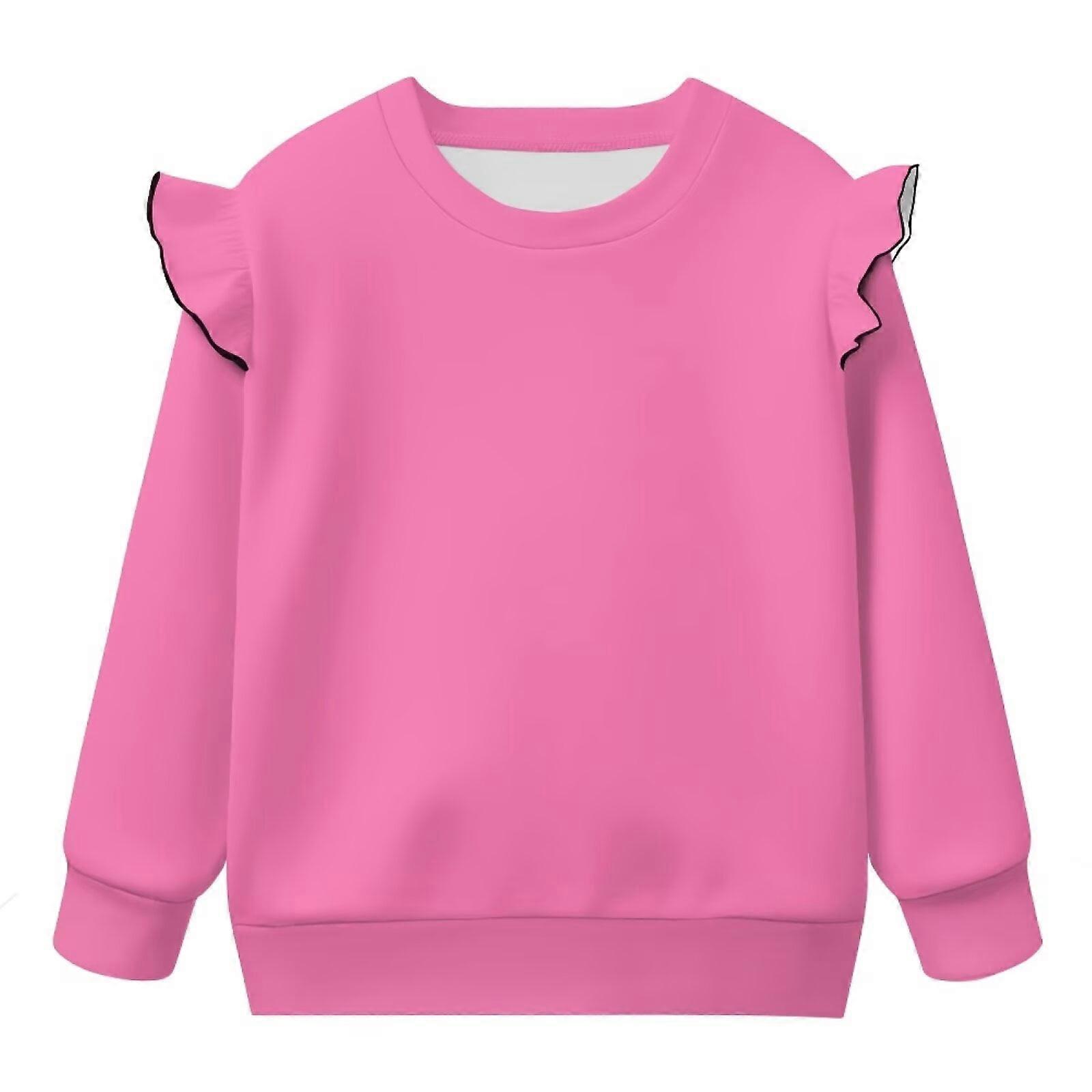 Kids Long Sleeve Pink Sweatshirt Crew Neck Pullover Sweater Ruffled Shoulders Design, Soft Fabric for Toddlers & Little Girls Size 4-5