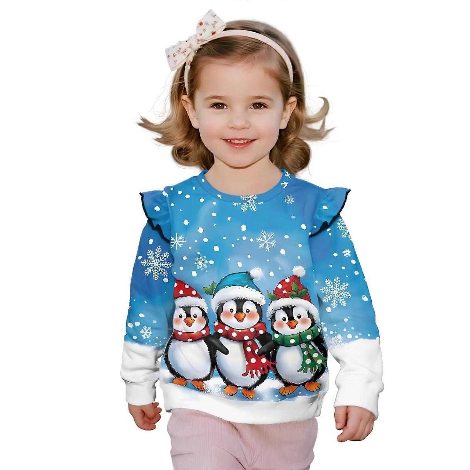 Kawaii Penguin Ruffle Shoulder Sweatshirt for Girls 5-6, Long Sleeve Crewneck Pullover Hoodie – Compatible with Christmas