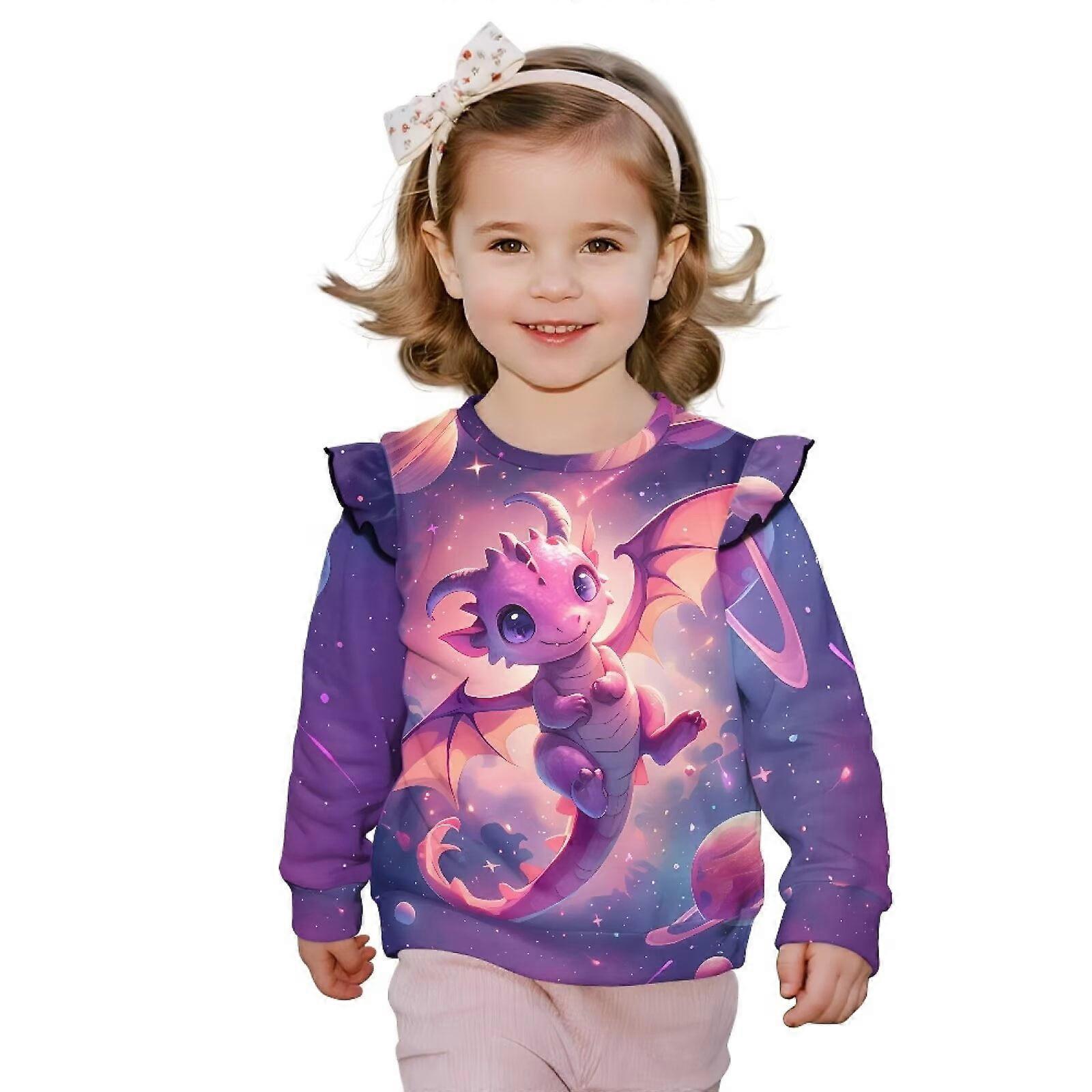 Girls Pullover Sweatshirt Ruffle Long Sleeve Pink Dragon Planet Shirts Kids Crewneck Sweaters Shirts Lightweight Sweatshirts for Girls Fall Trendy
