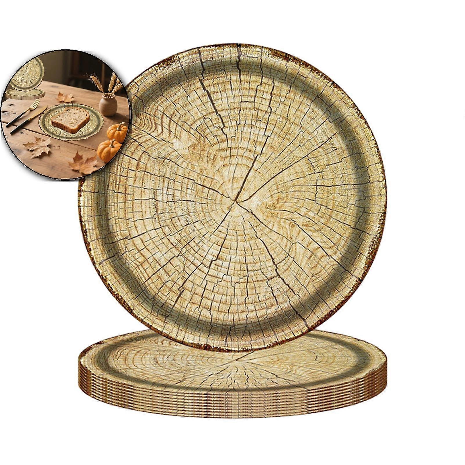 10 Count Wood Grain Paper Plates Rustic Wood Slice Disposable Party Farmhouse Dessert Plates Decoration for Lumberjack Birthday Party Supplies