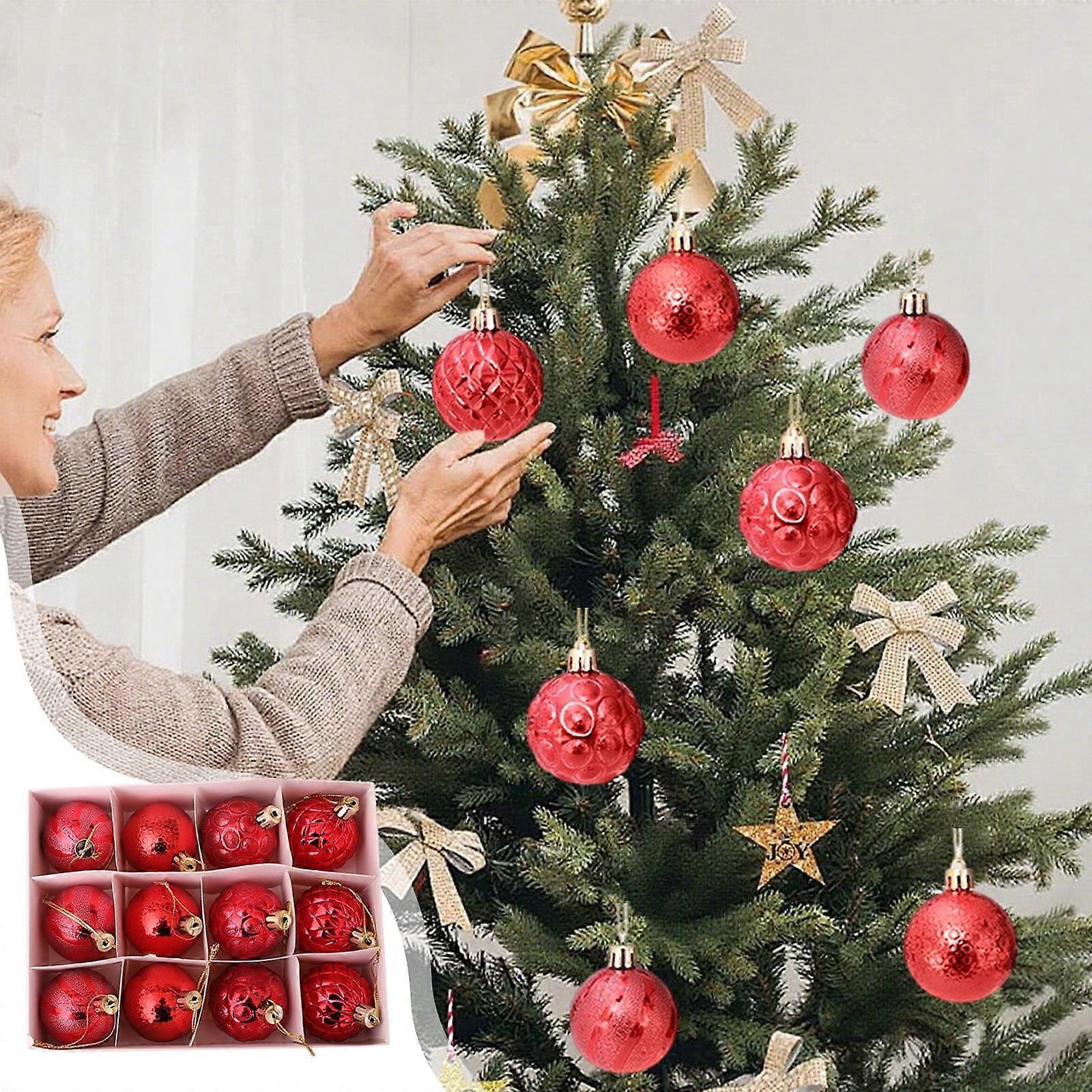 12 Pack Christmas Ornaments Set for Christmas Trees Unique Design Shatterproof Balls Easy to Hang for Home Office Party Decor 2in Red