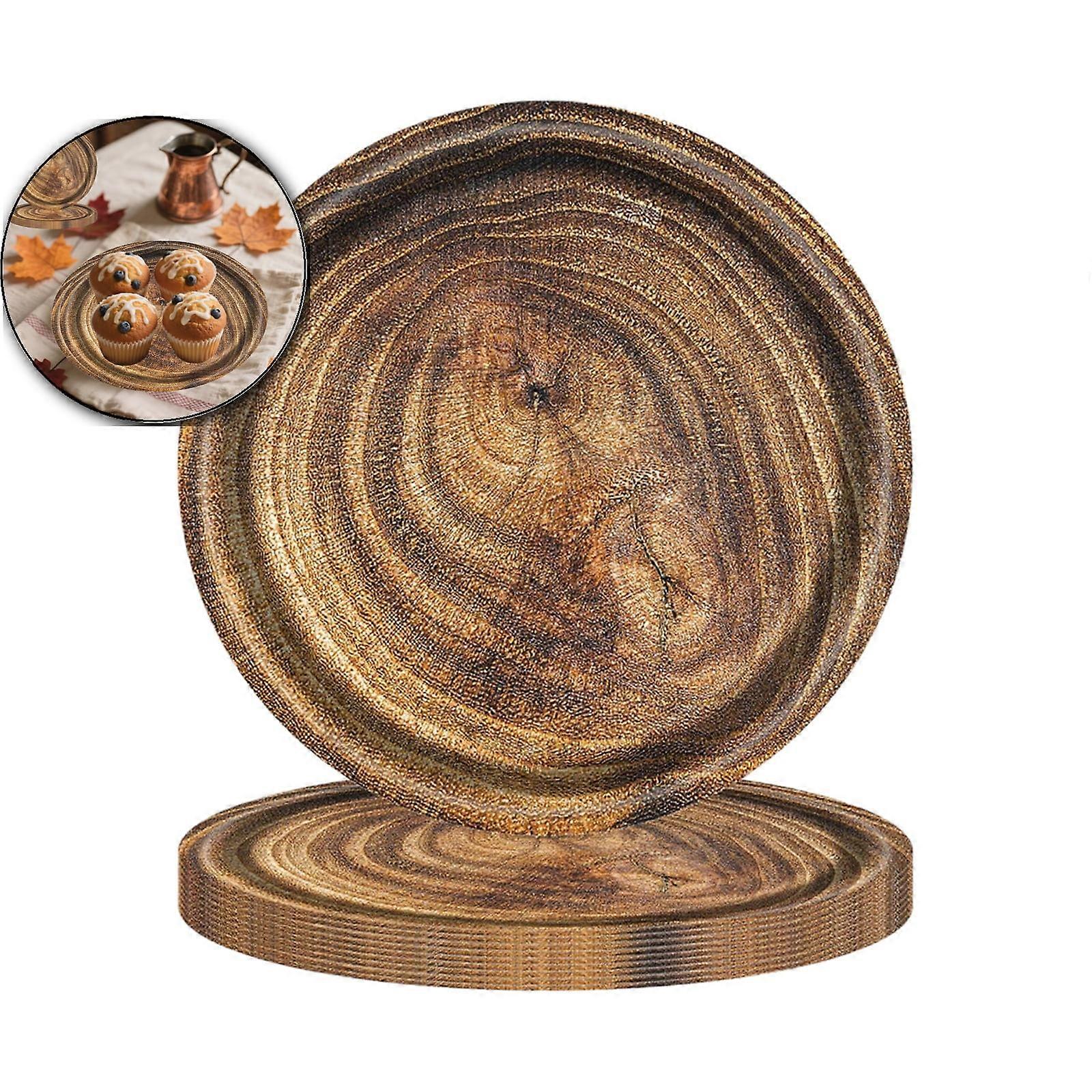 10 Count Wood Grain Paper Plates Rustic Wood Slice Disposable Party Farmhouse Dessert Plates Decoration for Lumberjack Birthday Party Supplies
