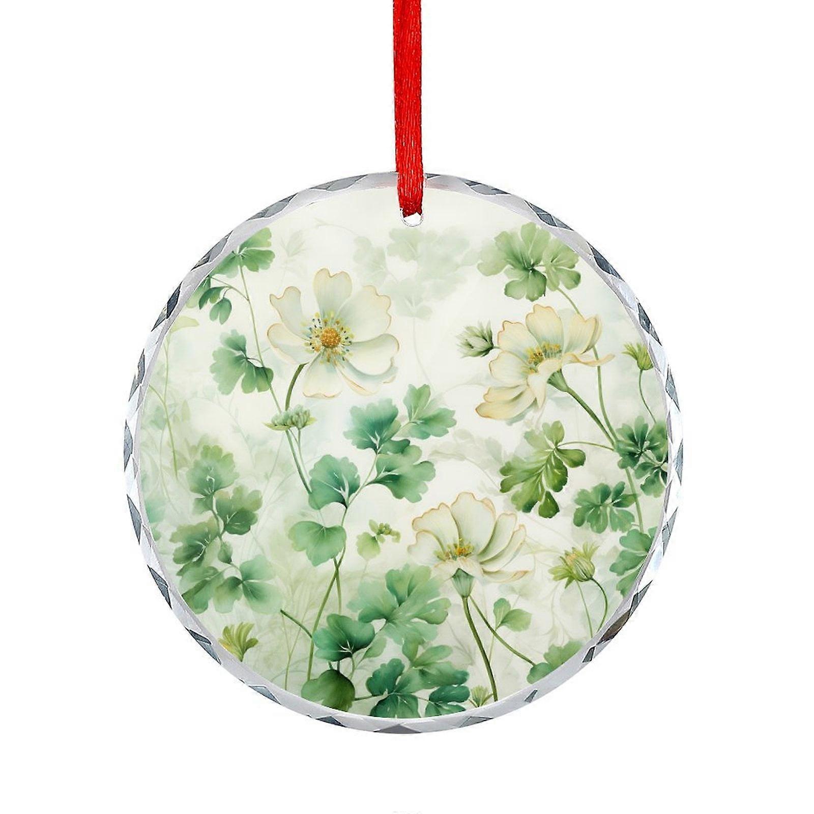 Green Leaves & Flowers Crystal Glass Ornament – Compatible with Teacher, Coworker, Boss, Friend, Mentors – St. Patrick’s Day & Christmas