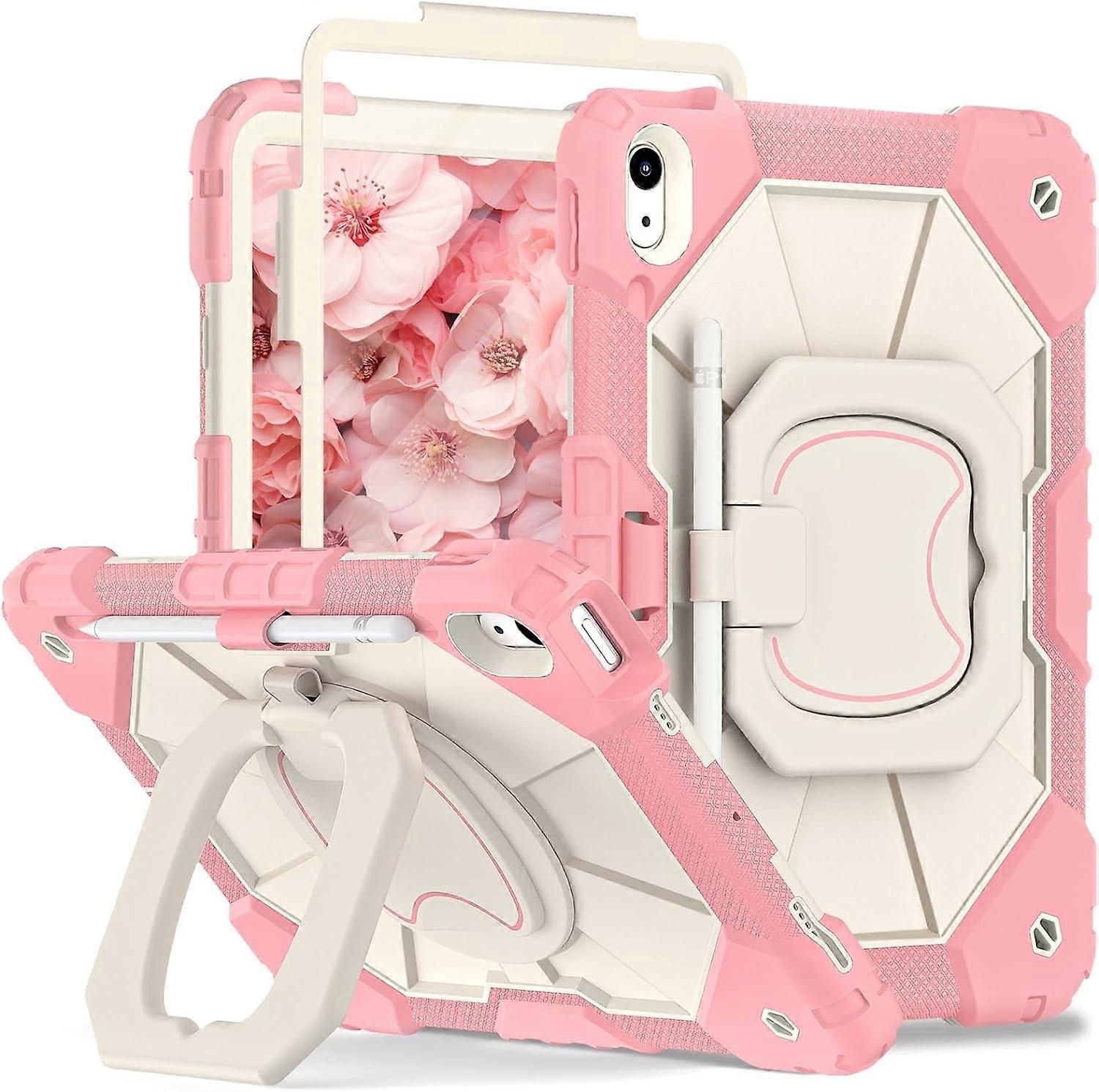 Compatible with iPad 10th Gen (A2696/A2757/A2777) 10.9" Case, 360° Rotating Stand, Shoulder Strap & Pen Holder – Rose Gold