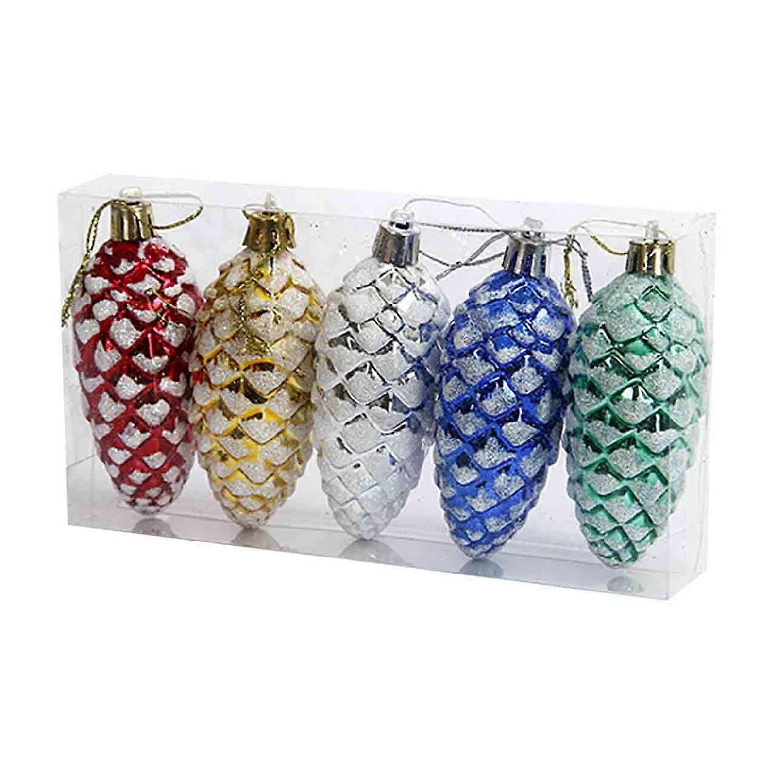5 PCS Glitter Pinecone Ornaments for Christmas Tree Decor, Scene Layout & Crafts – Compatible with Christmas Trees