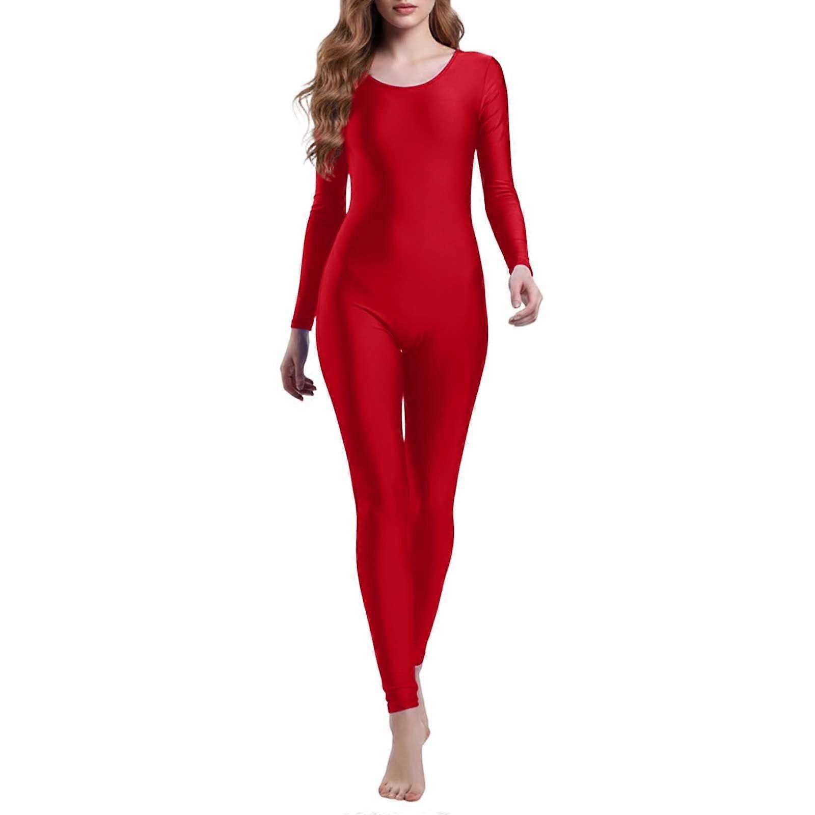 Jumpsuits for Women Long Sleeve One Piece Jumpsuit for Women Workout Seamless Jumpsuits Exercise Tummy Control Rompers Red L