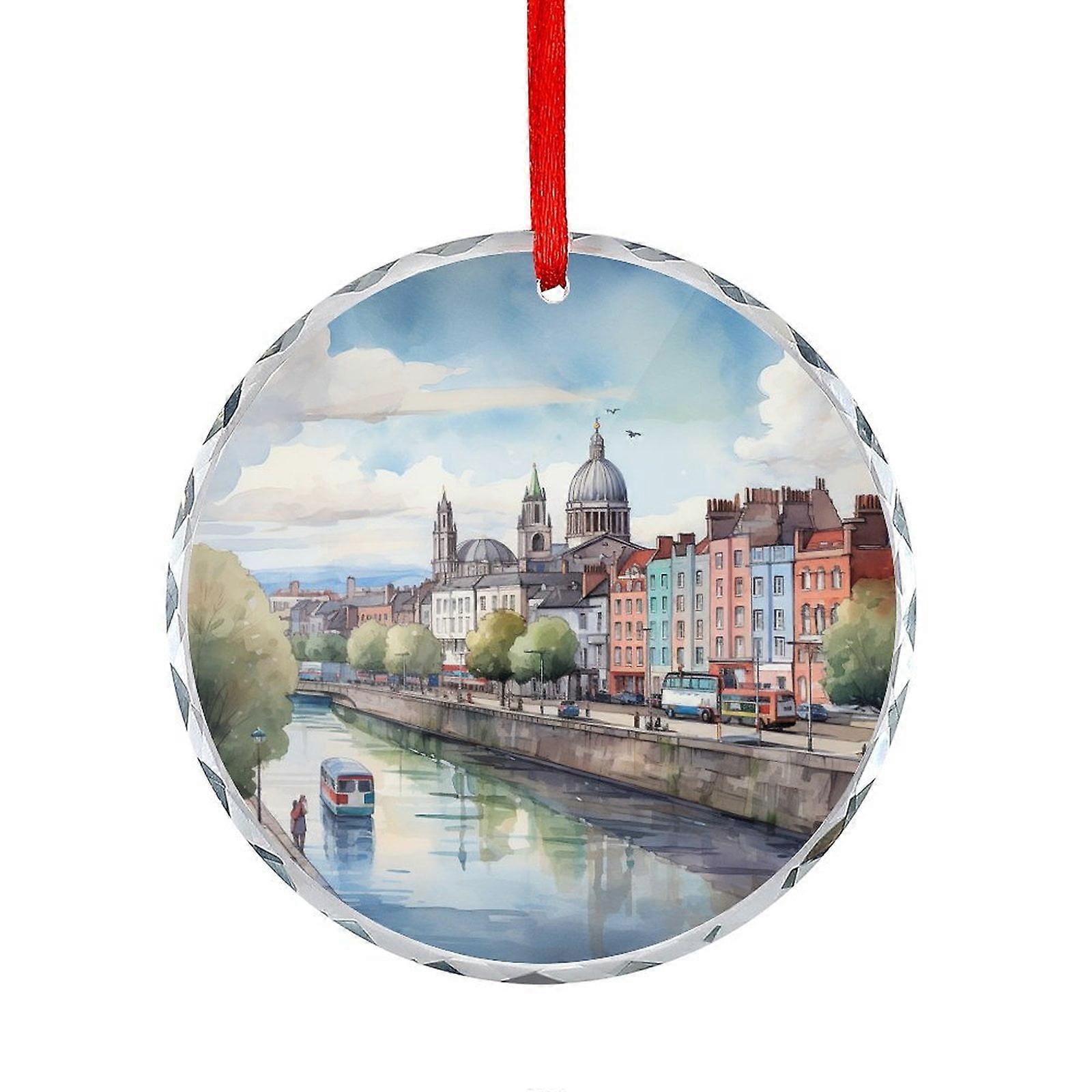 Watercolorist Dublin Xmas Ornament Travel Memorable Round Glass Hanging Ornament Xmas Tree Decor for Kids Mom Dad Friends Loves