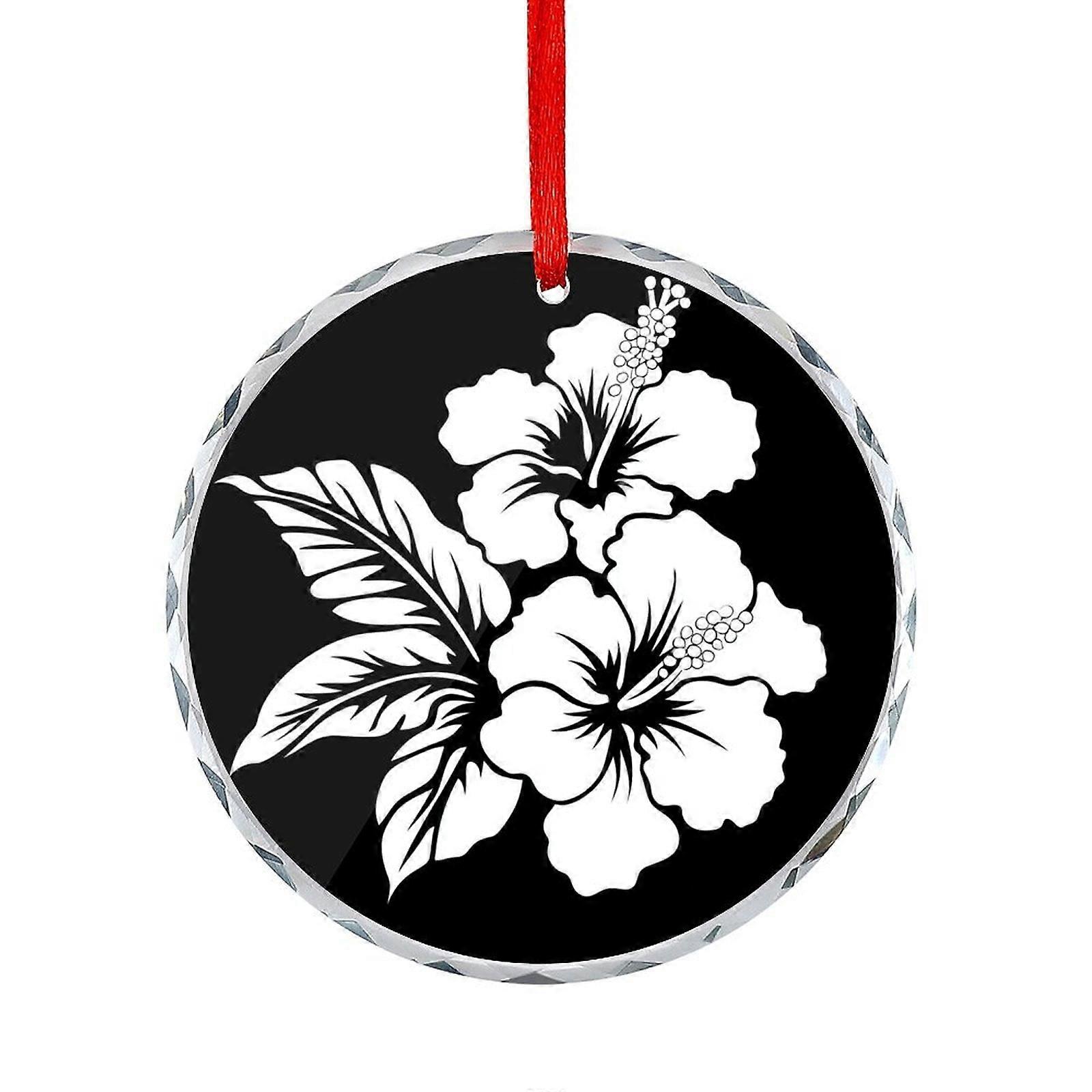Black White Hibiscus Flower Glass Ornament Tropical Flower Christmas Glass Decoration for Home Office Xmas Tree Decor