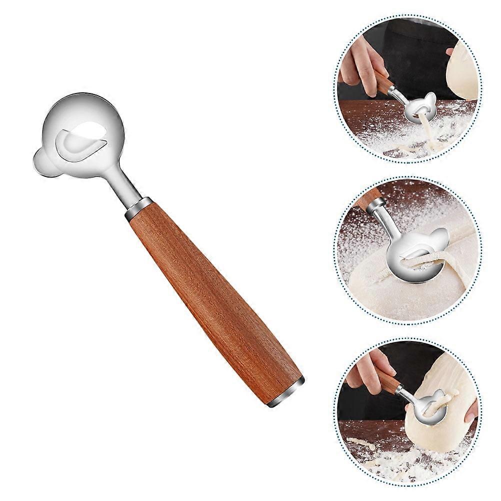 1Pc Brown Wooden Dough Cutter Dough Scraper with Ergonomic Handle for Kitchen Use