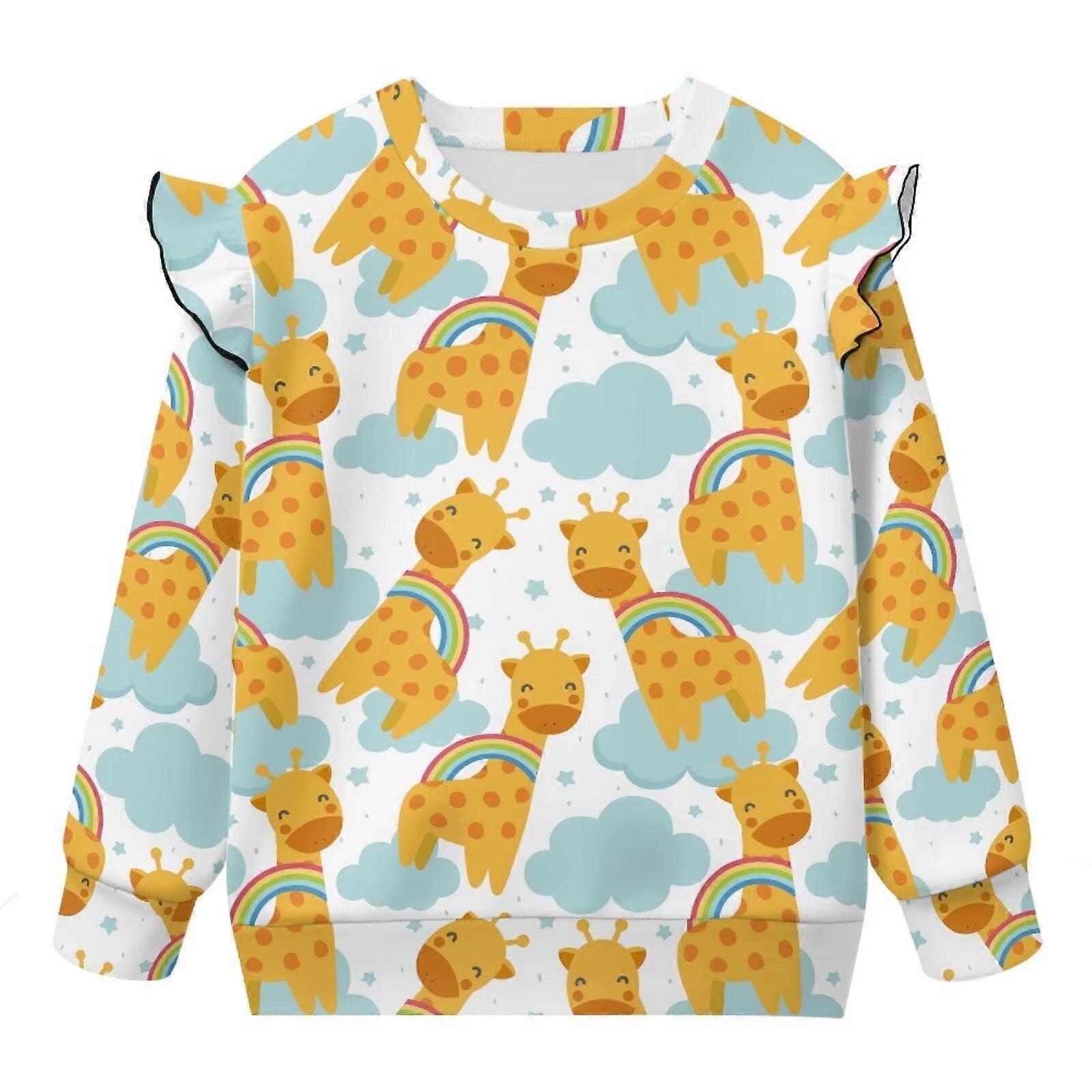 Toddler Baby Girl Sweatshirt Ruffle Shoulder Kawaii Giraffe Pullover Sweatshirts Novelty Pullover Hoodies Age 1-2 Casual Hoodies Crew Neck Blouse